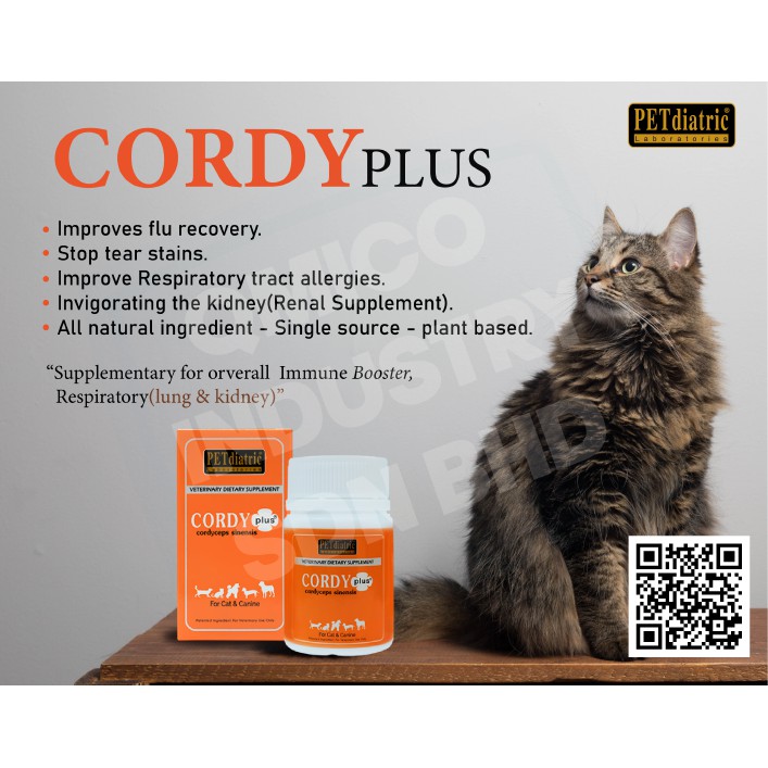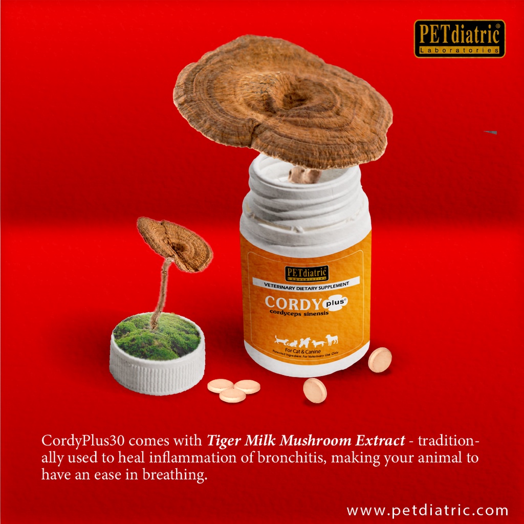 Cordyplus 30 for Dogs and Cats. 30 Tablets - Flu Supplement - Tears stain control - Renal Care
