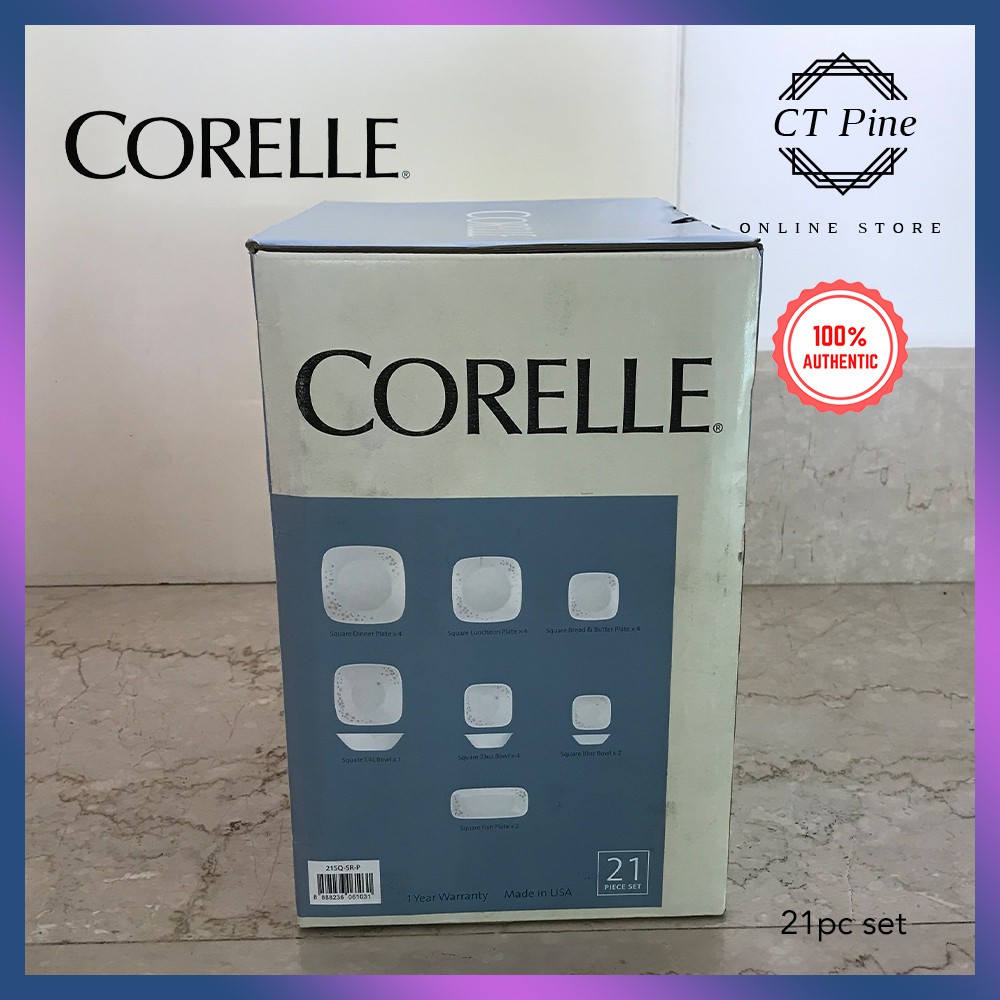 Corelle Square 21pc Dinnerware set /// Pinggan Mangkuk Bowl Plate Soup Lauk Tableware Elegant