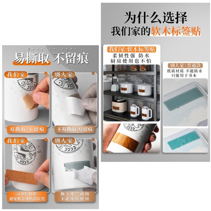 Cork Self Adhesive Labels (Free Marker Pen)-Wooden Sticker Water Resistant Packaging Sealing Tag Labelling Kitchen Tools