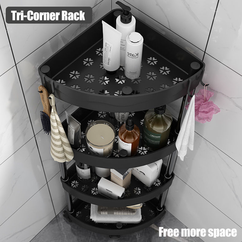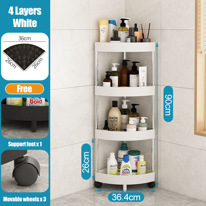 Corner Storage Trolley Rack Triangular Multi-Layer Bathroom Kitchen Multifunction Shelves with Wheels Troli Rak