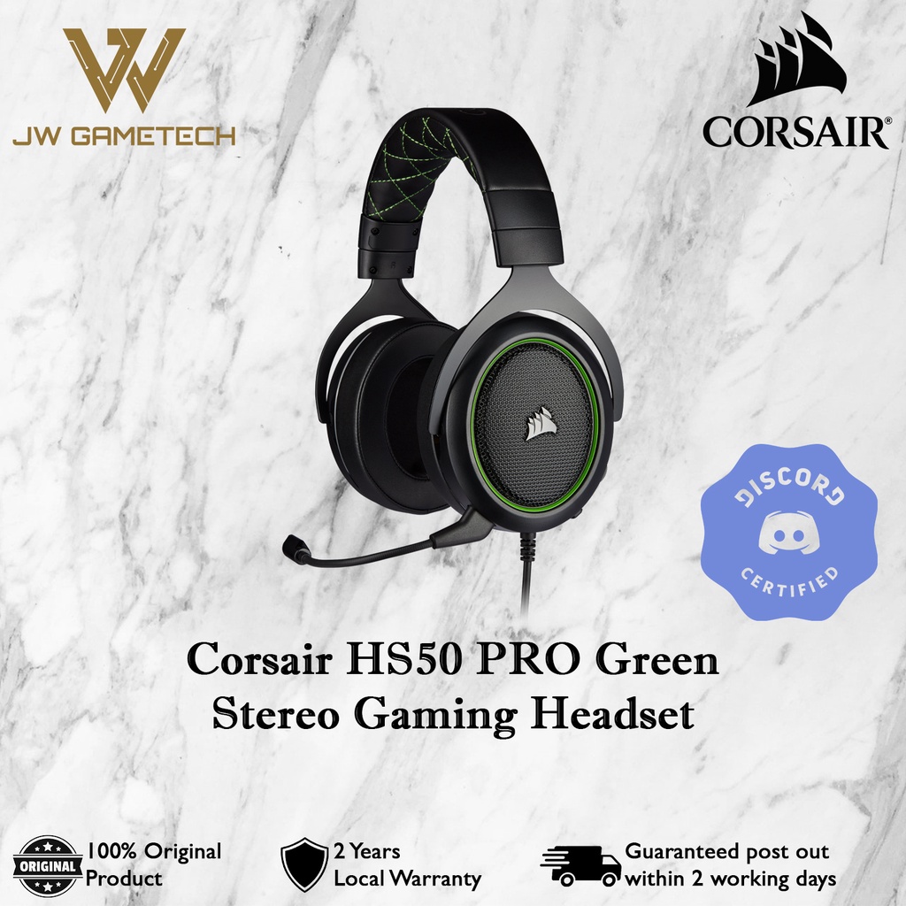 Corsair HS50 PRO Stereo Gaming Headset - Carbon | Blue | Green