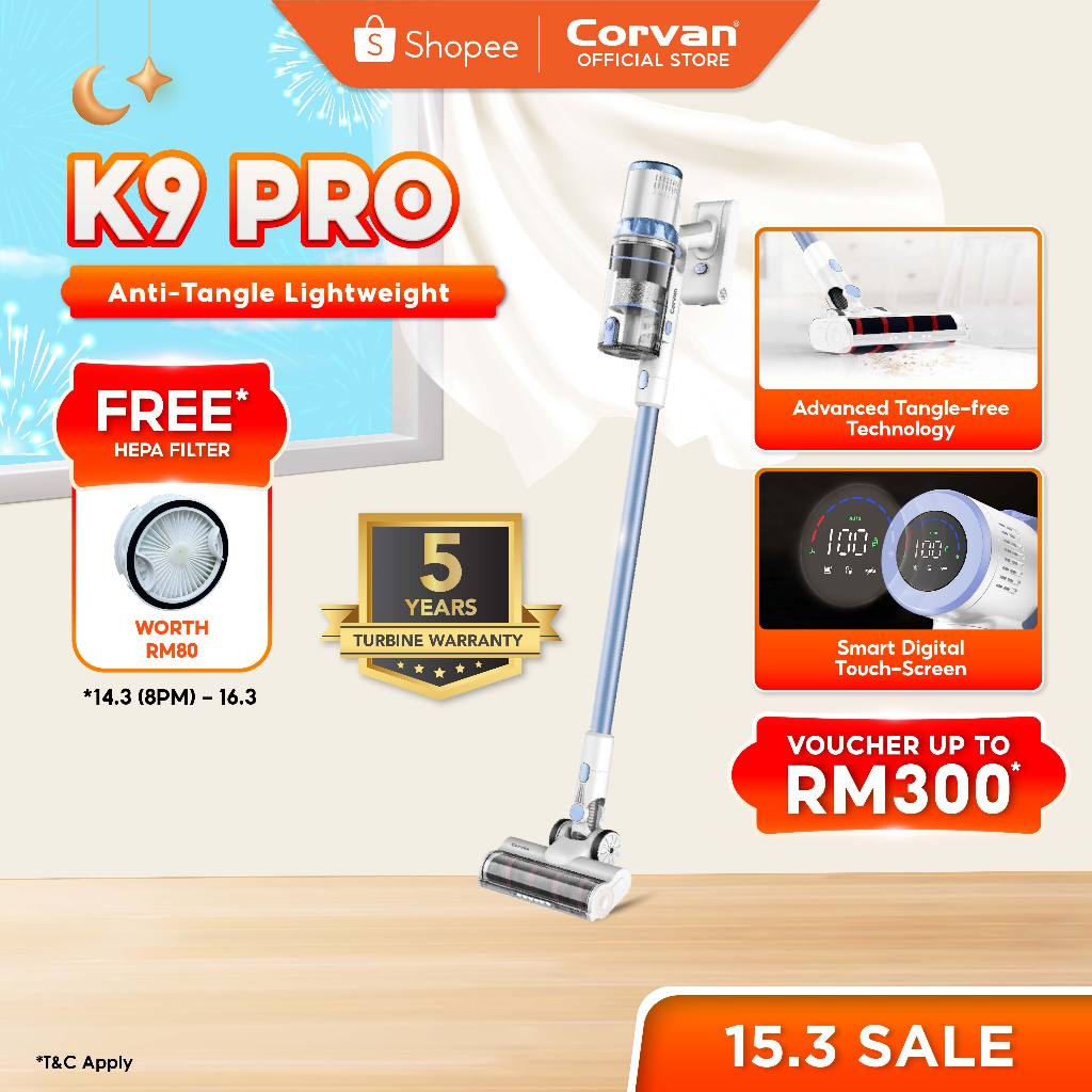 Corvan K9Pro/K9Luxe Cordless Vacuum Cleaner| Auto Dirt Detect| Anti-tangle| 181AW Suction| Pet Hair