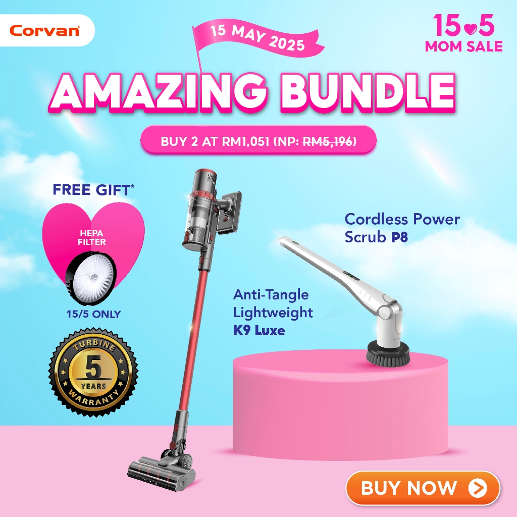 Corvan K9Pro/K9Luxe Cordless Vacuum Cleaner| Auto Dirt Detect| Anti-tangle| 181AW Suction| Pet Hair