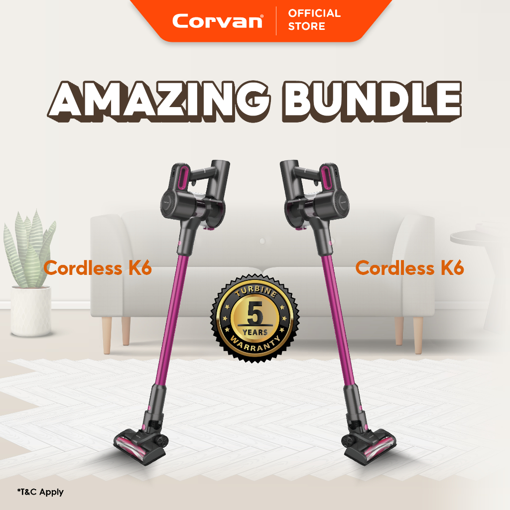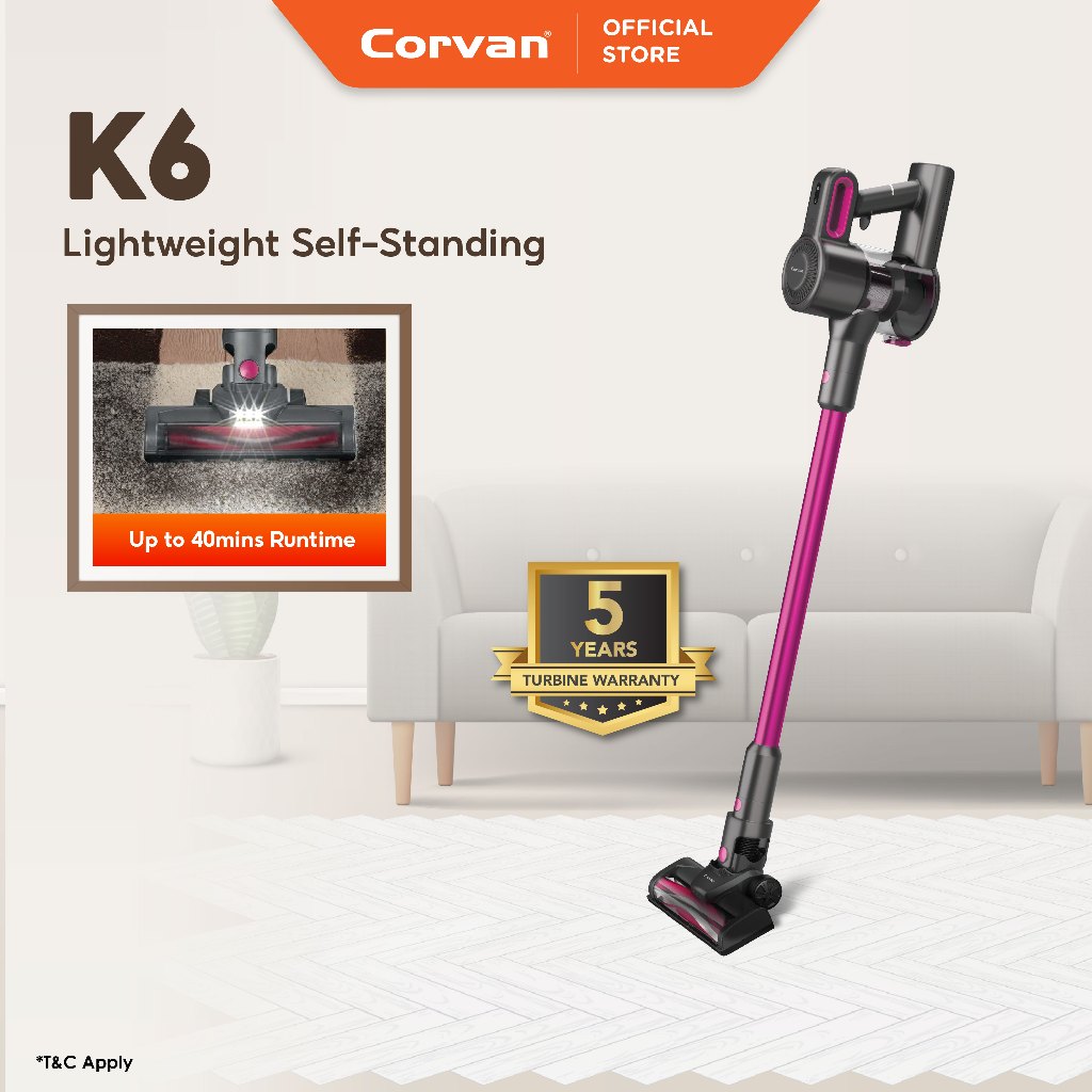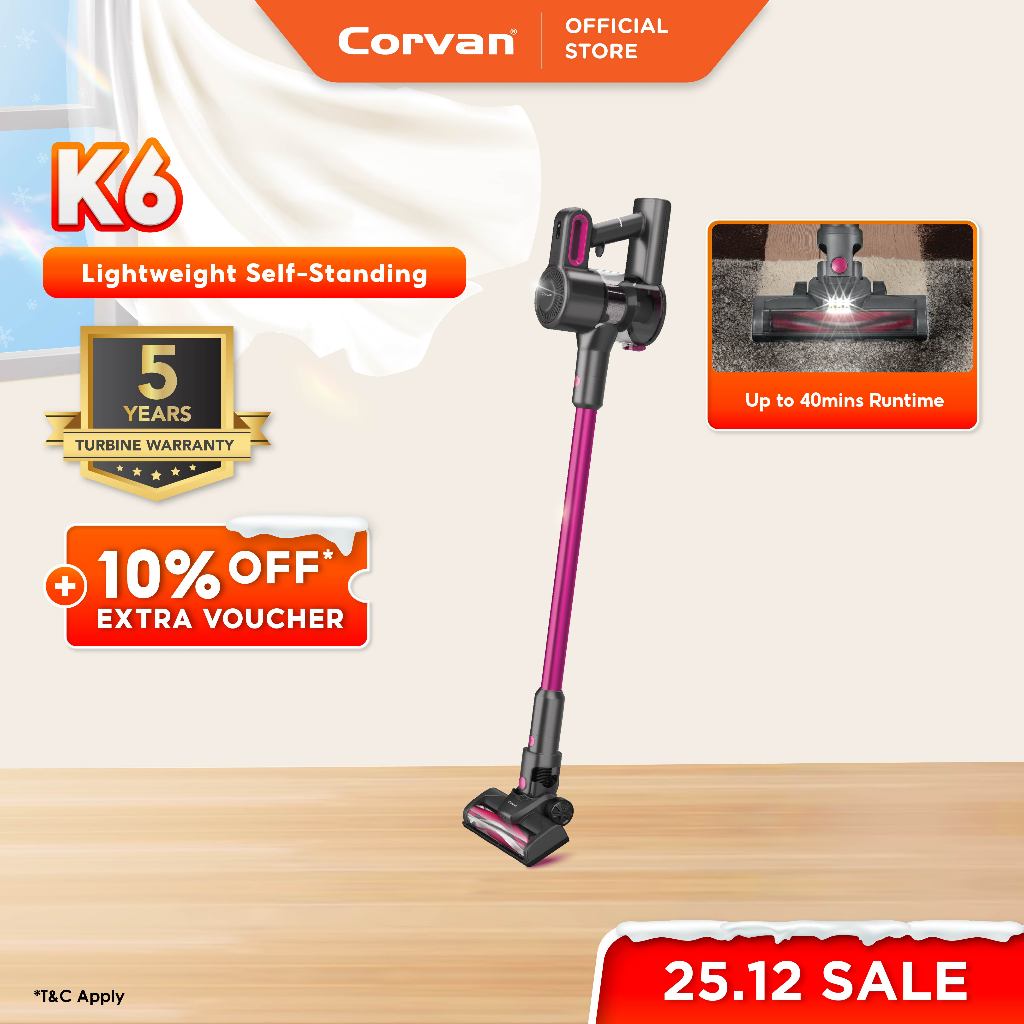 Corvan K6/K6s Cordless Vacuum Cleaner | Strong Suction | Light 1.2kg | HEPA | Self-standing |40min
