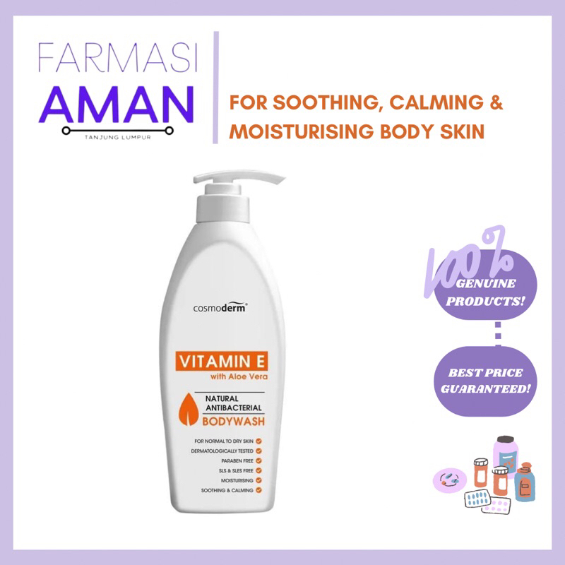 Cosmoderm Natural Antibacterial Body Wash 500ml (Tea Tree Oil / Vitamin E / Niacinamide)