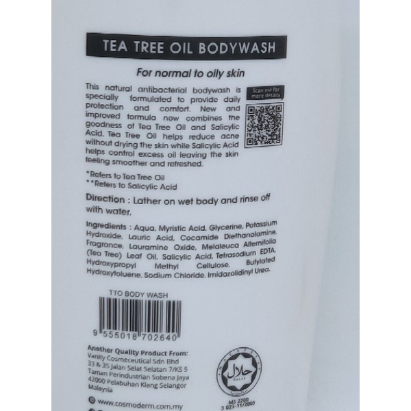Cosmoderm Tea Tree Oil Natural Antibacterial Body Wash 500ml