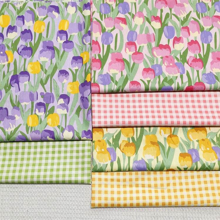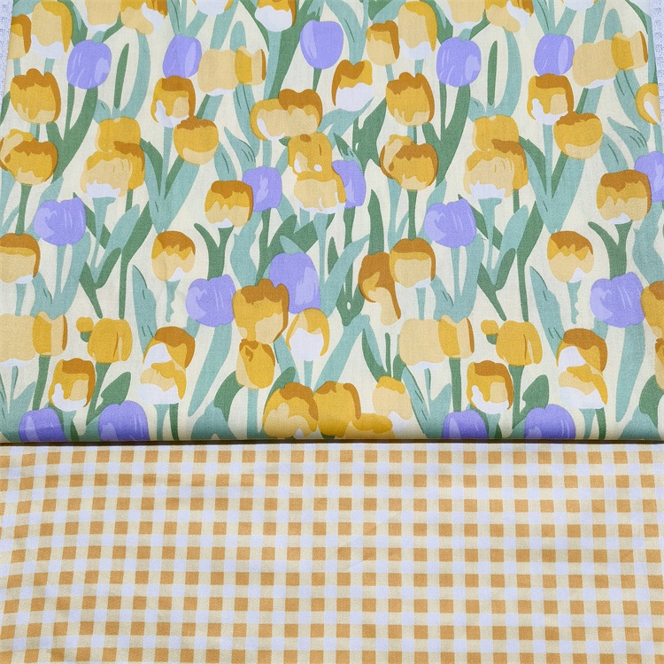 Cotton Fabric Width 60'', Tulip Plaid Design Clothing Dresses Cloth, Kain Cotton Bidang 60''