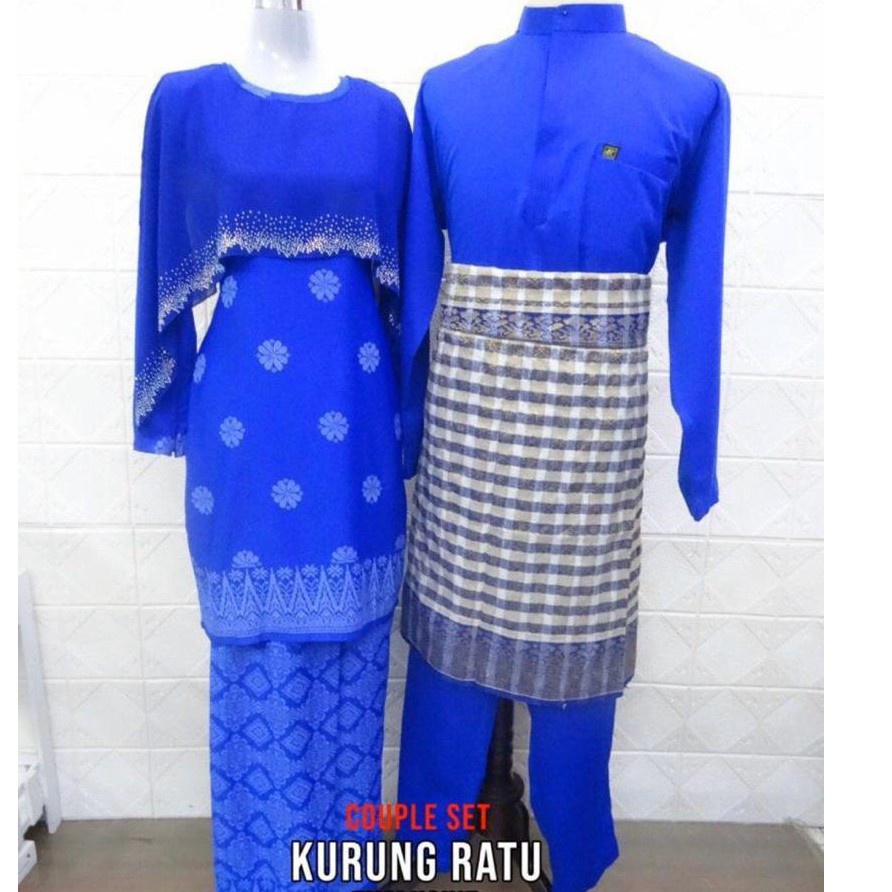 Couple Set Sedondon Royal Blue Baju Kurung Moden Songket Tabur dengan Cape Manik exclusive Kurung Ratu