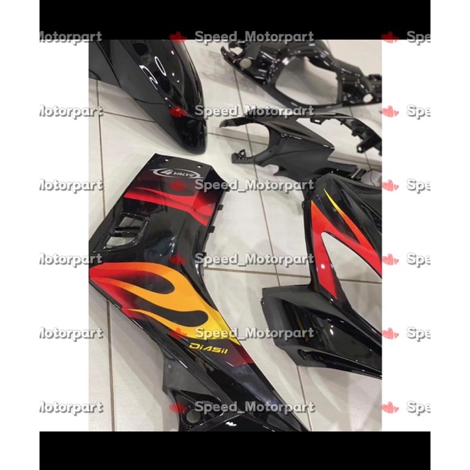 Coverset Bodyset Yamaha LC LC135 V1 Hitam Api Merah Original Hong Leong Yamaha HLY Stripe Siap Tampal - Free Emblem