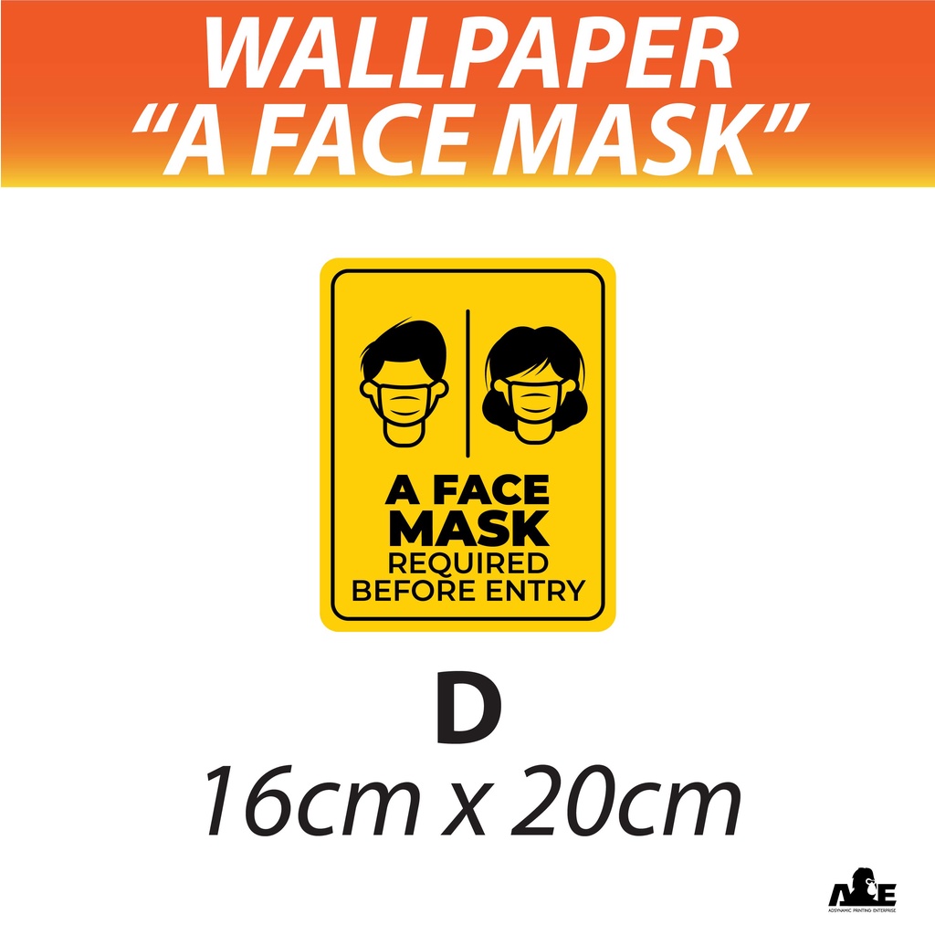 Covid 19 SOP Awareness (A FACE MASK BEFORE ENTRY) - Wallpaper/ Sticker Sign