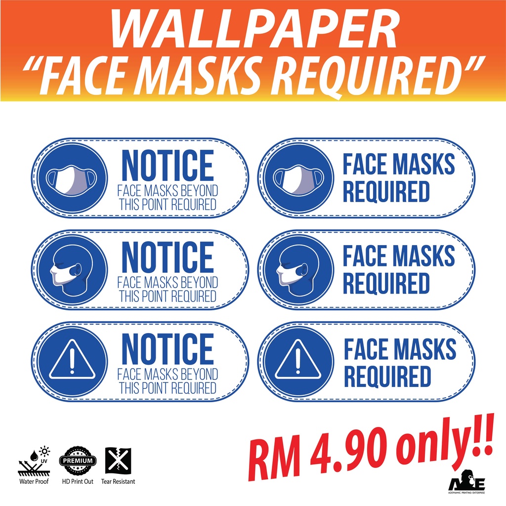 Covid 19 SOP Awareness (FACE MASK REQUIRED) - Wallpaper/ Sticker Sign