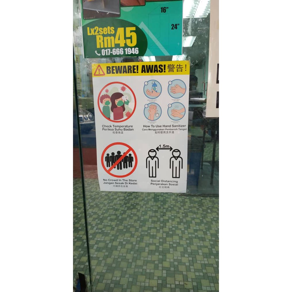 Covid-19 Sop Poster A3 size Social distance Amaran , face mask, suhu badan, sanitizer 3 Language (Twin Pack)