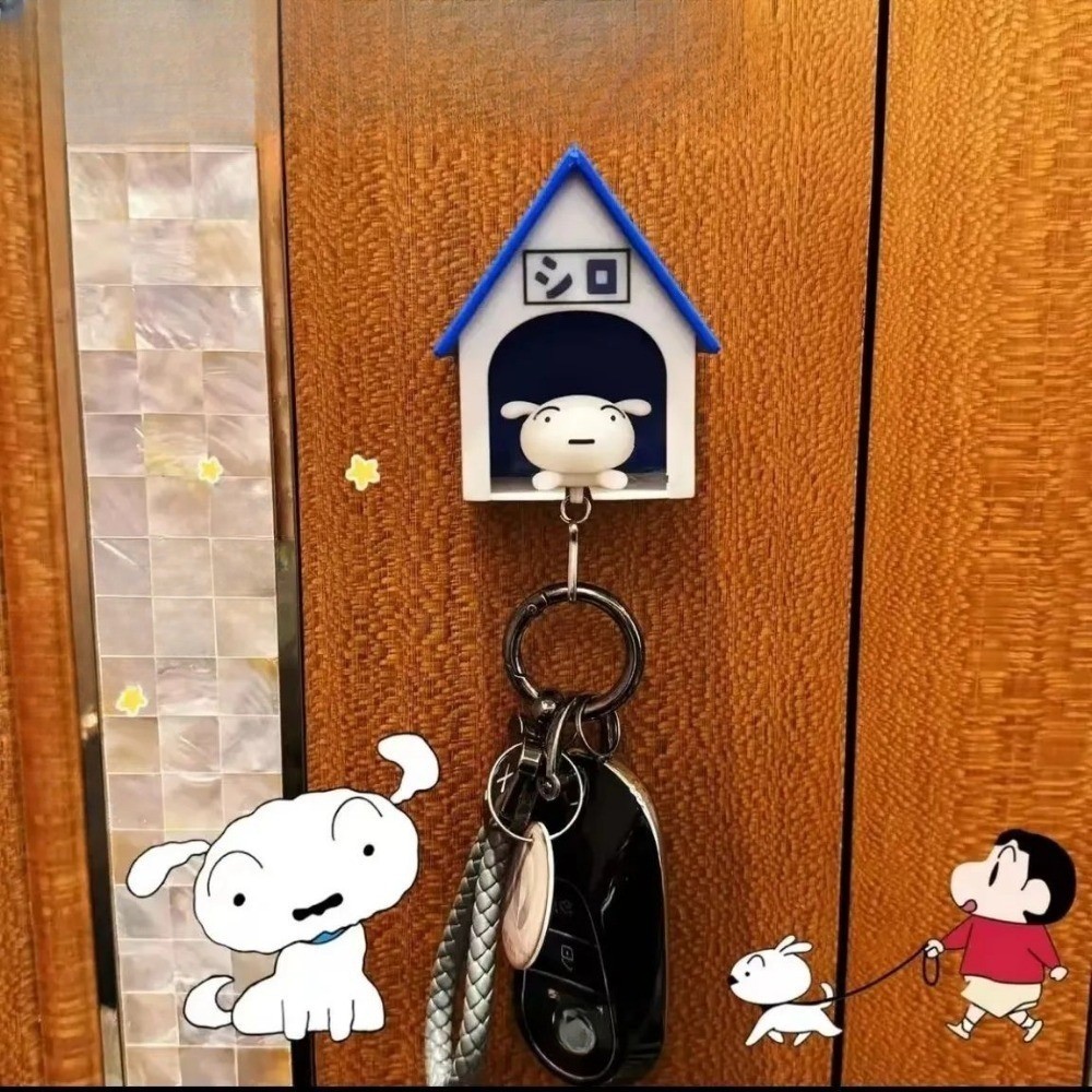 Crayon Shin-chan Dog Nest Keychain Anti-Loss Decorative Dual-Purpose Nohara Shiro Kennel Pendant Keys Holder Decoration House Collect Toys
