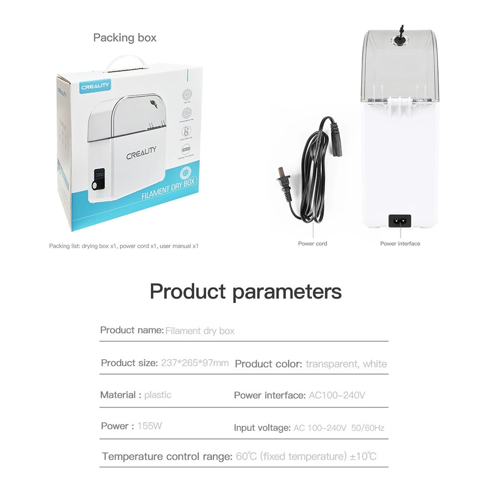 Creality V1 Filament Dryer Box Keep Filament Dry During 3D Printing, Spool Holder Filament Storage Box