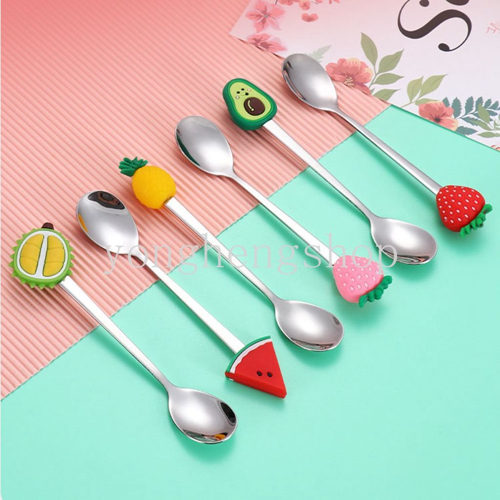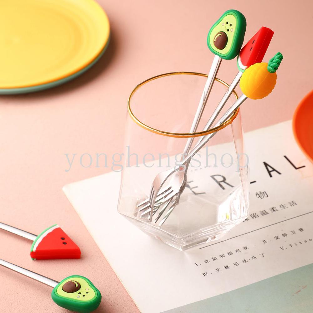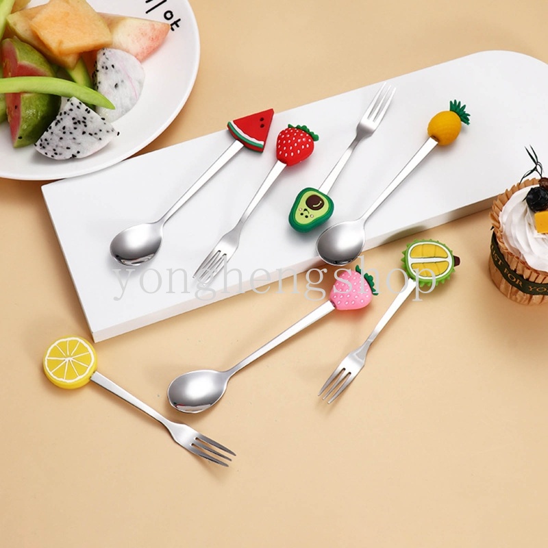 Creative Cute Fruit Shaped Stainless Steel Spoon Fork Milk Coffee Stirring Spoons Cutlery Dessert Fruit Fork Teaspoon Tableware