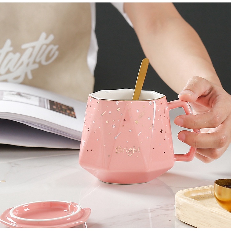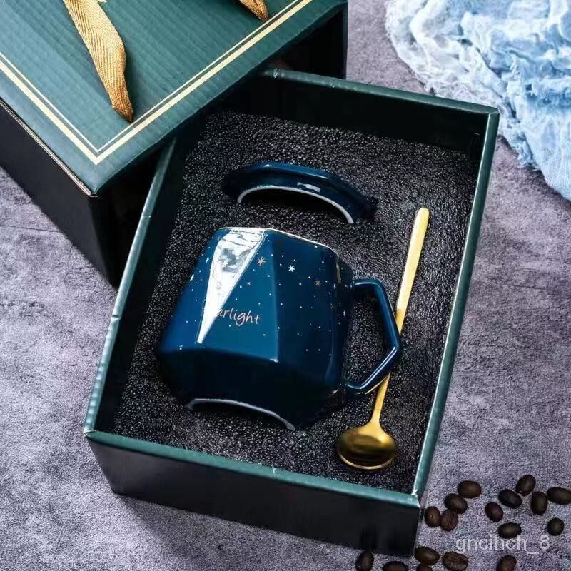 Creative European Ceramic Mug Diamond Cup Couple Cup Coffee Cup Set Gift Cup Senior Gift Box