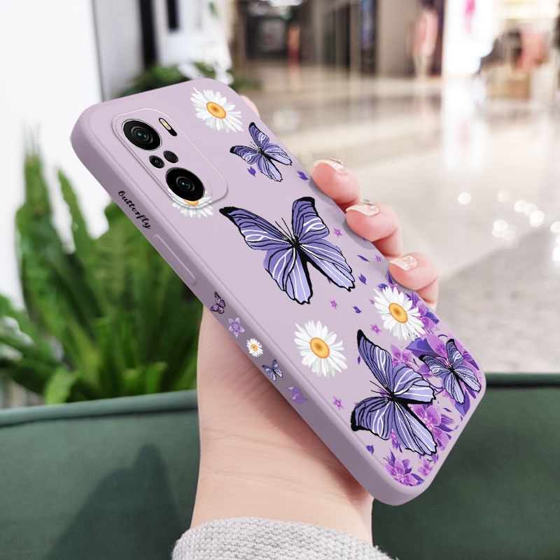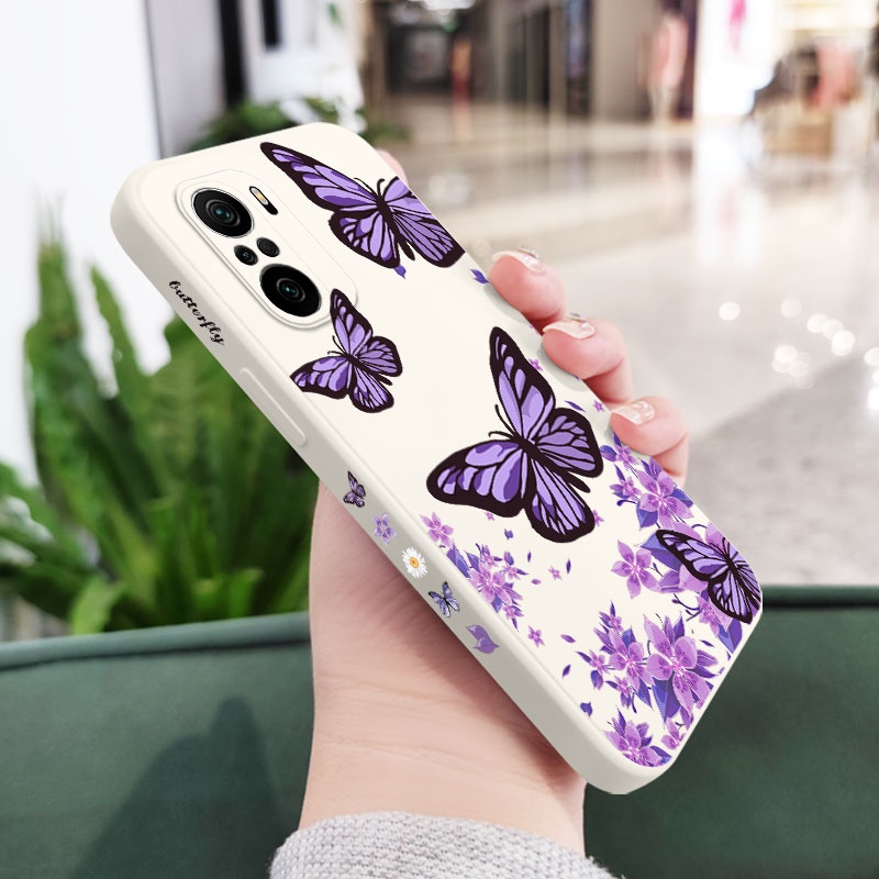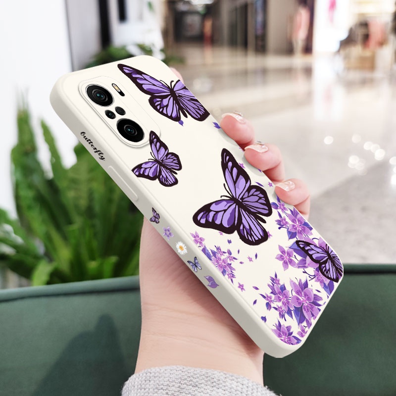 Creative Purple Butterflies Phone Case For Xiaomi Mi Poco M4 F3 X4 X3 M3 Pro 5G Liquid Silicone Side Pattern Cover