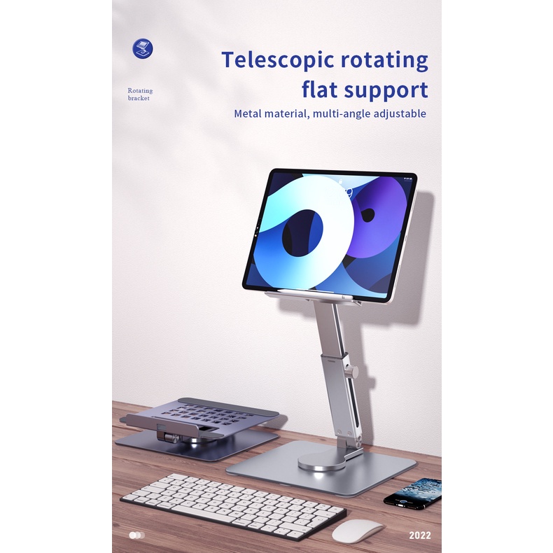 Creative Trend Tablet Stand Desk Riser 360 Rotating Multi-Angle Height Adjustable Foldable Holder Dock For iPad Laptop