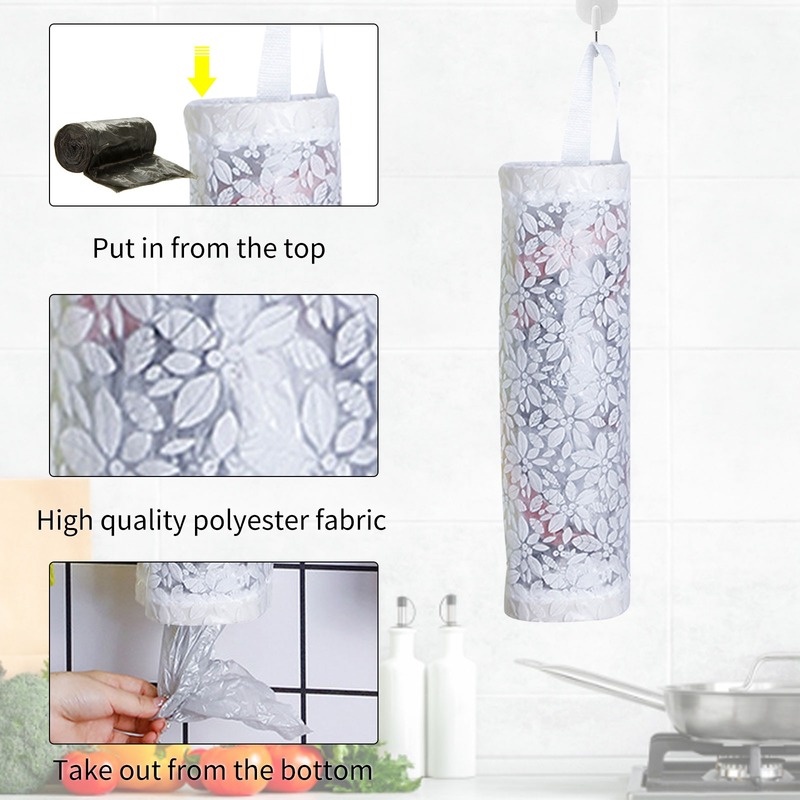 Creative Wall Hanging Cylindrical Polyester Garbage Bags Storage Pouch/ Home Multifunction Plastic Bag Grocery Extraction Organize Holder