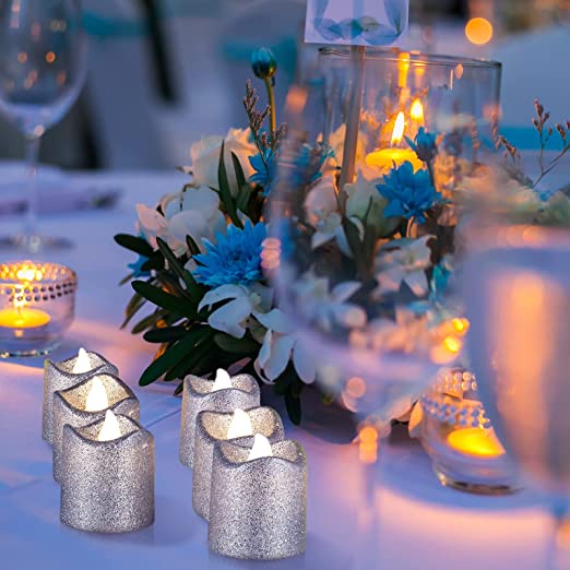 Creative Wave Led Candle Light Glitter Smokeless Simulation Candle Lights / Romantic Flameless Flickering Decorative Candle Lamp / Battery Operated LED Tea Light / Electronic Fake Candle Christmas Festival Celebration Wedding Birthday Party Decoration