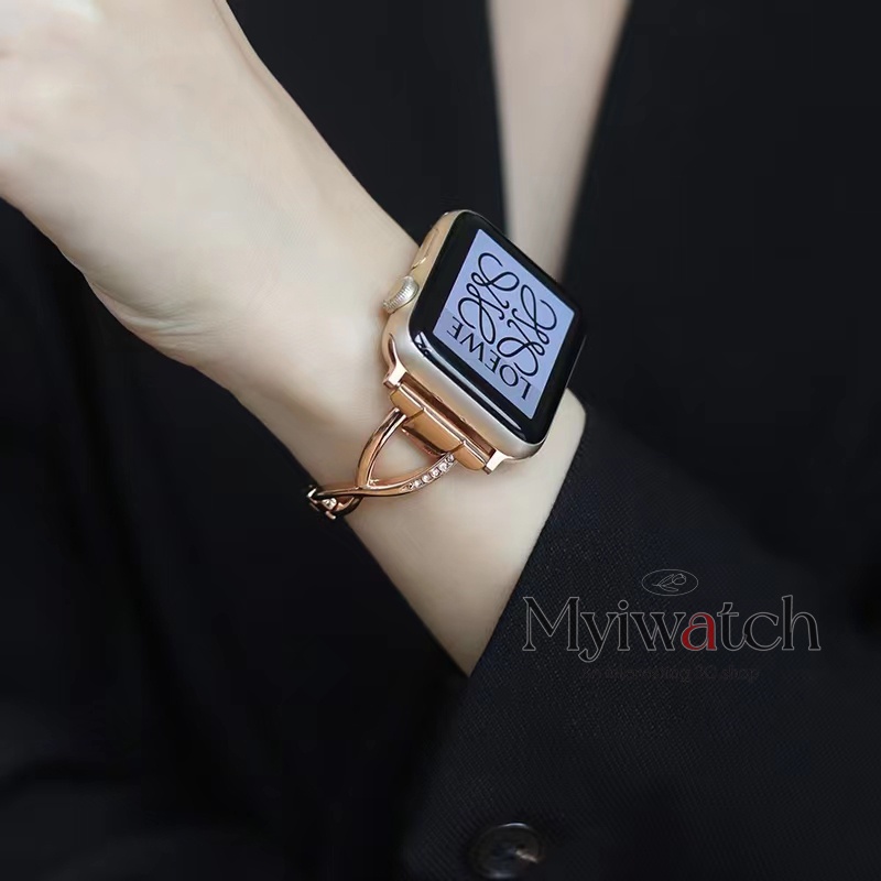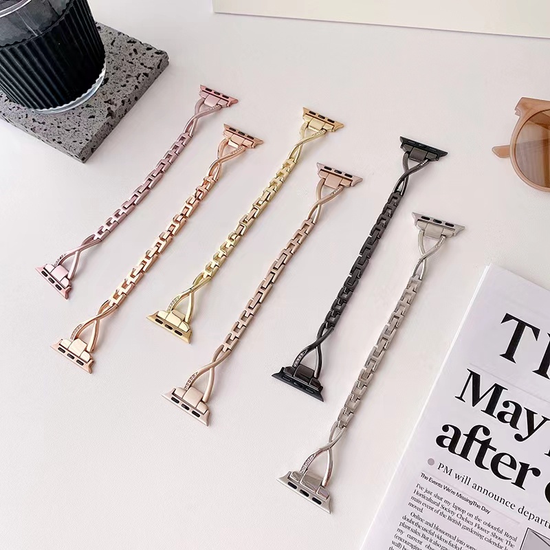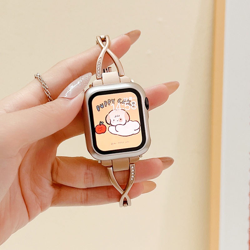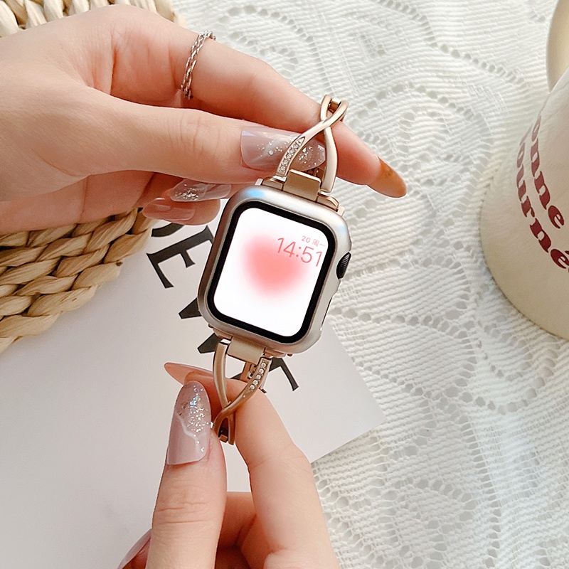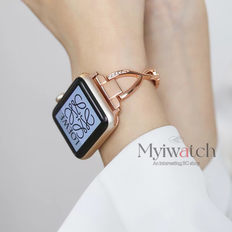 Creative X-shaped Slim Metal Strap For iwatch serise 11 10 9 S8 7 6 5 4 SE 3 2 1 Starlight rose gold bracelet for iwatch 46mm 45mm 41mm 40mm 44mm 42mm 38mm Smart Watch Accessories