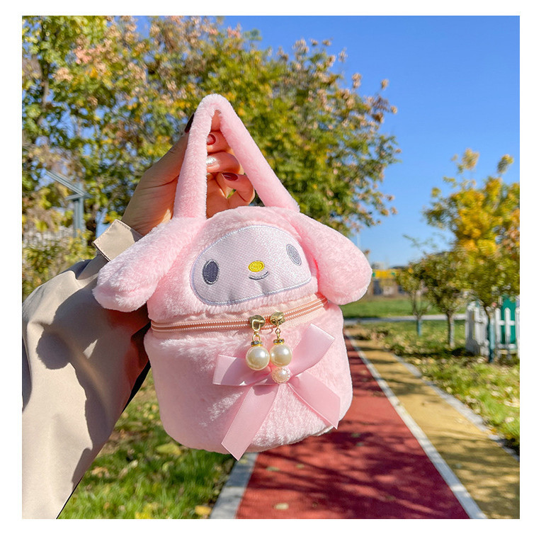 Creative plush toy handbag cartoon kuromi Cinnamoroll melody Lotso Alien hello Kitty bucket bag for kids girls sling bag gift for girls crossbody bag