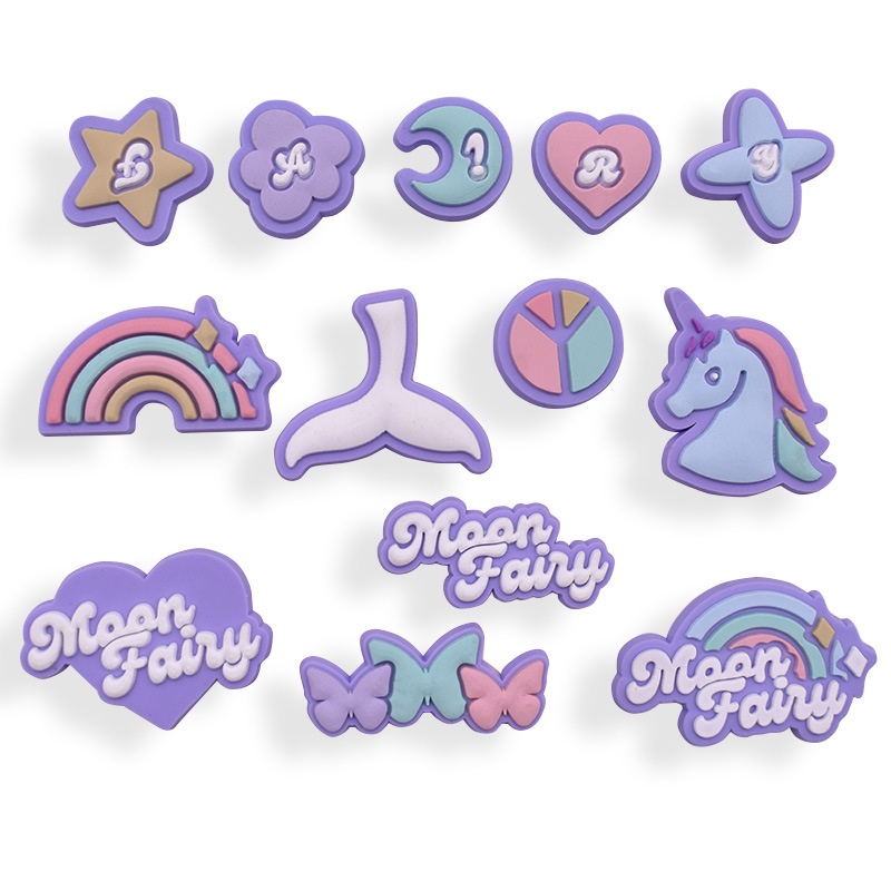 Croc Jibbit Purple Pink Cartoon Pig Unicorn Pattern Bcukle Charm Star Moon Decoration Children's Gift Croc Accessories Bracelet Charm
