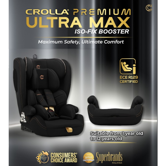 Crolla UltraMax High Back Booster Seat with Isofix and Harness 1 to 12 Years Old