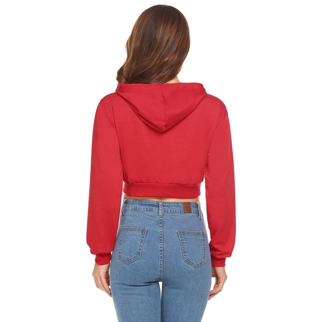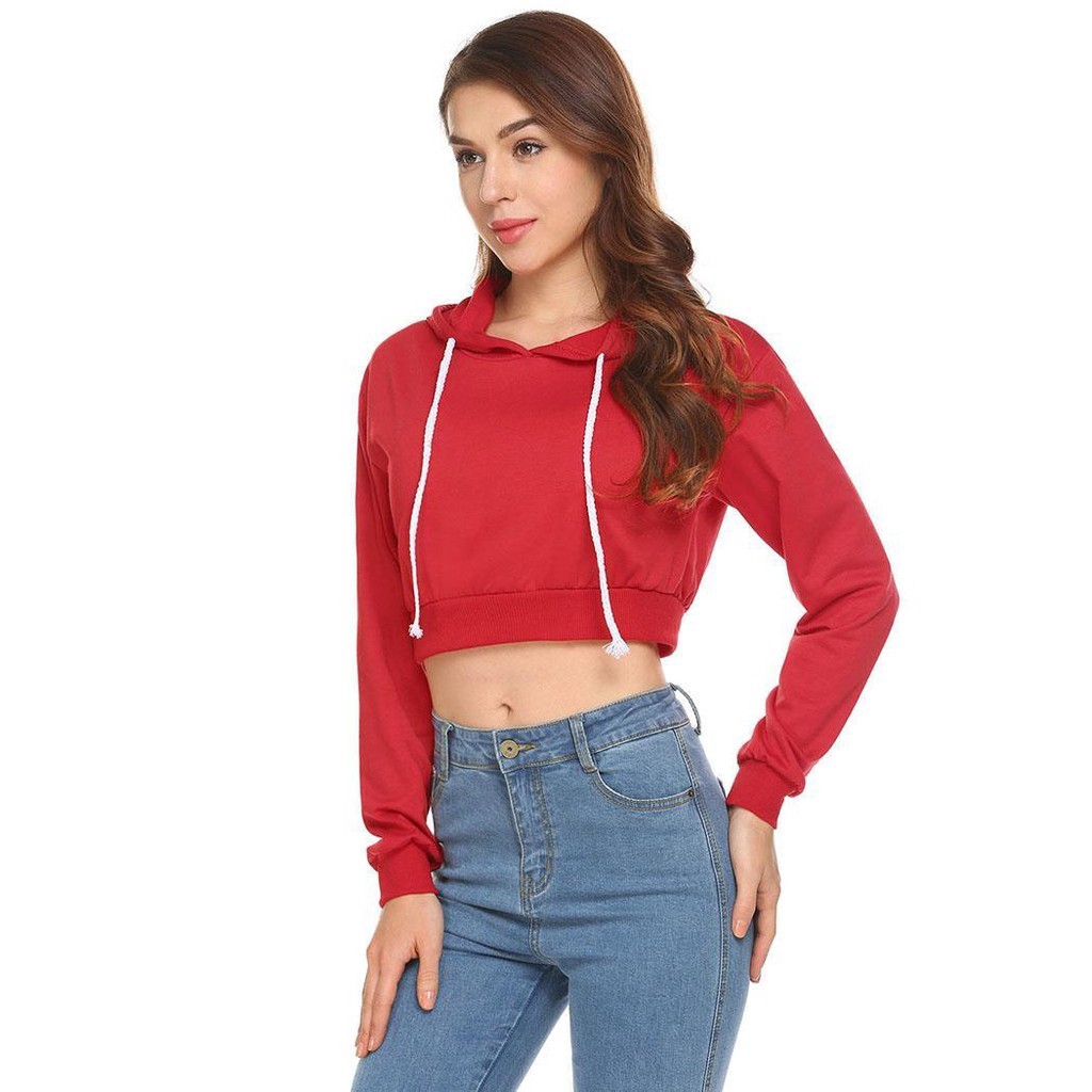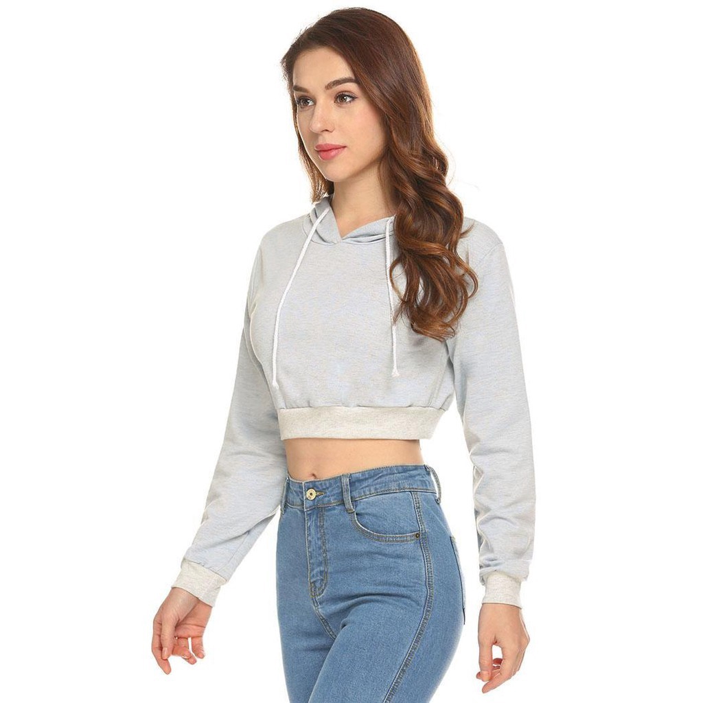 Crop Top Hoodies Women Hooded Sweatshirts Long Sleeve Solid Casual Pullover