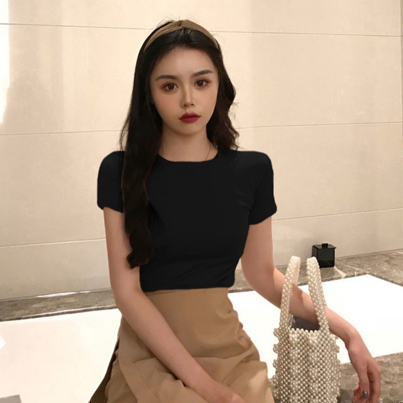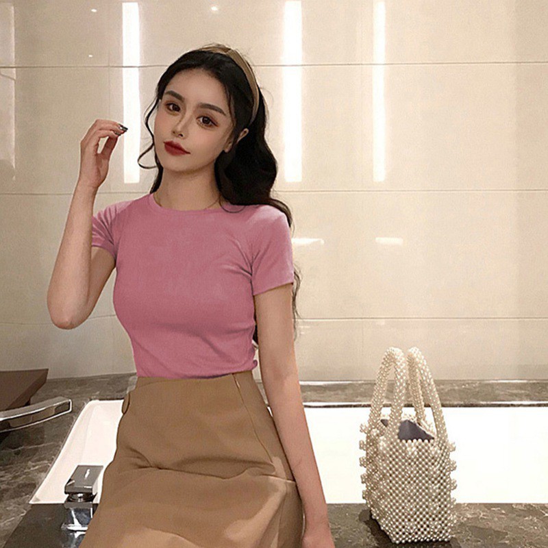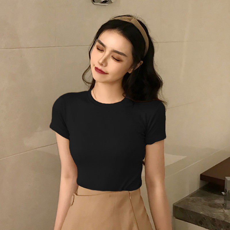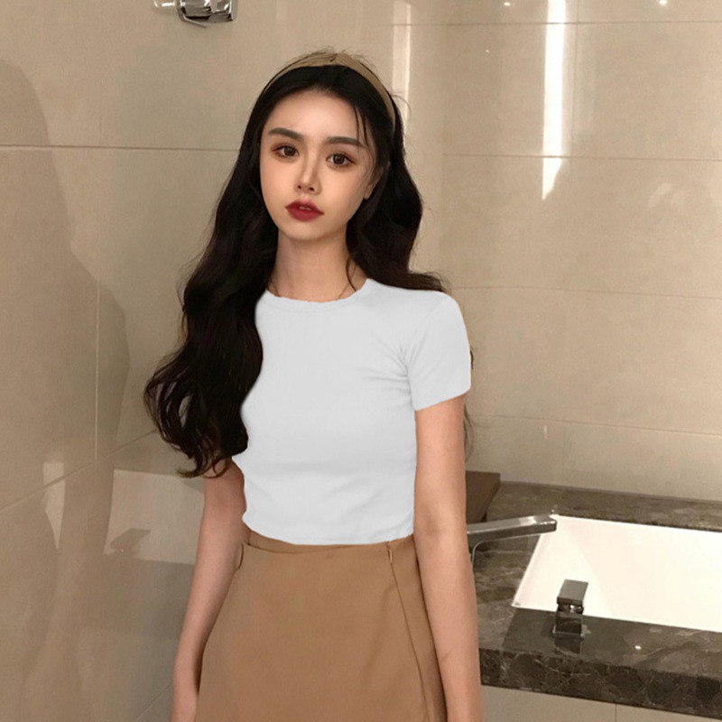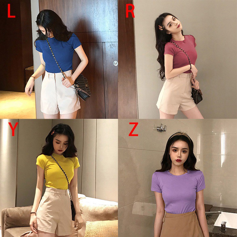 Crop Top Women T Shirt Cute Mock Neck Short Sleeve Tshirt Woman Lettuce Trim Juniors Tee Tops