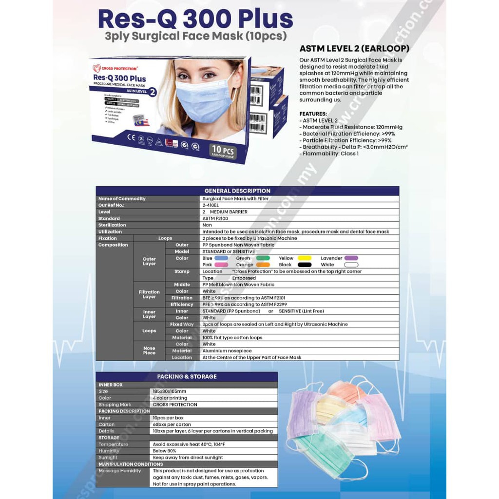 Cross Protection ASTM Level 2 Procedure Medical Face Mask (50pcs)