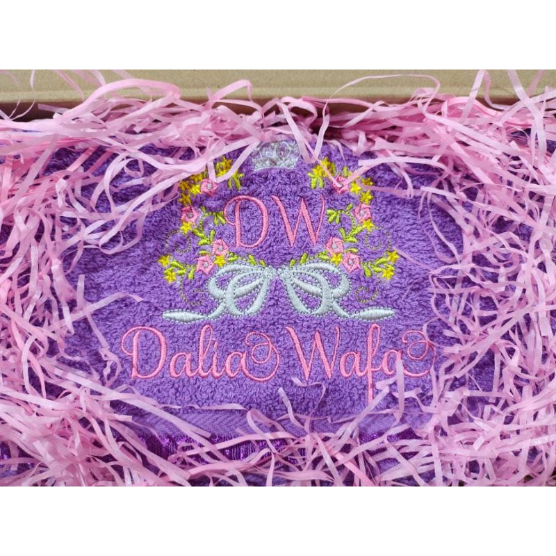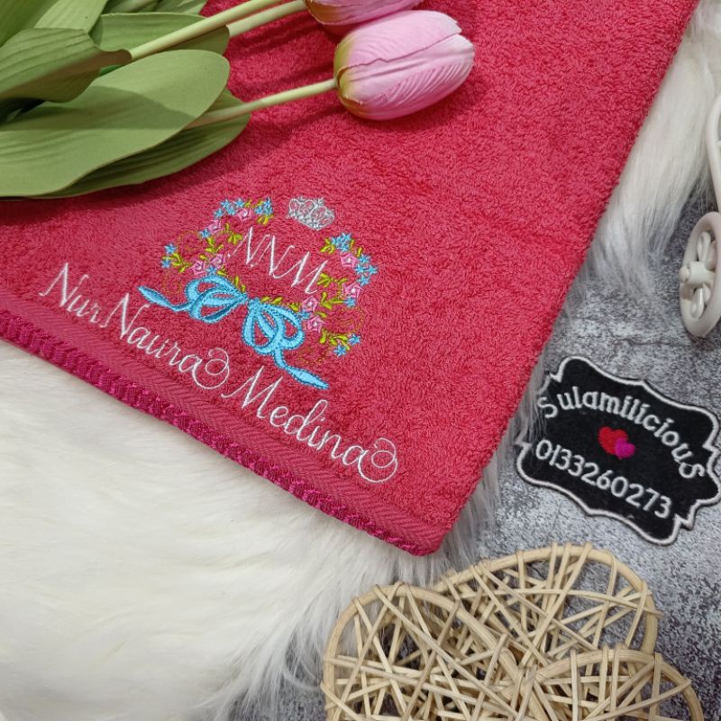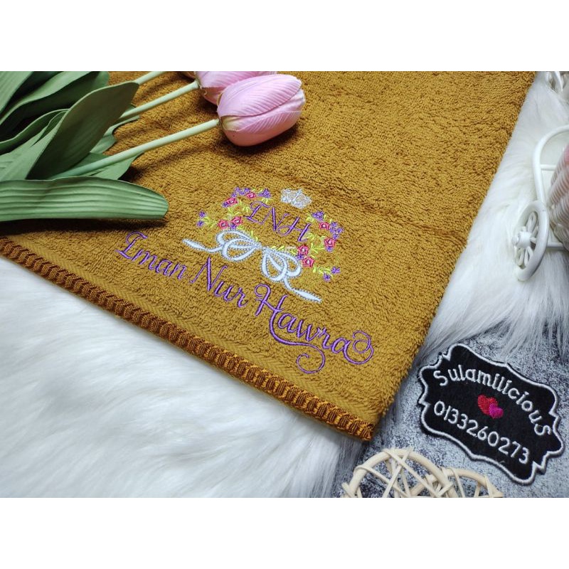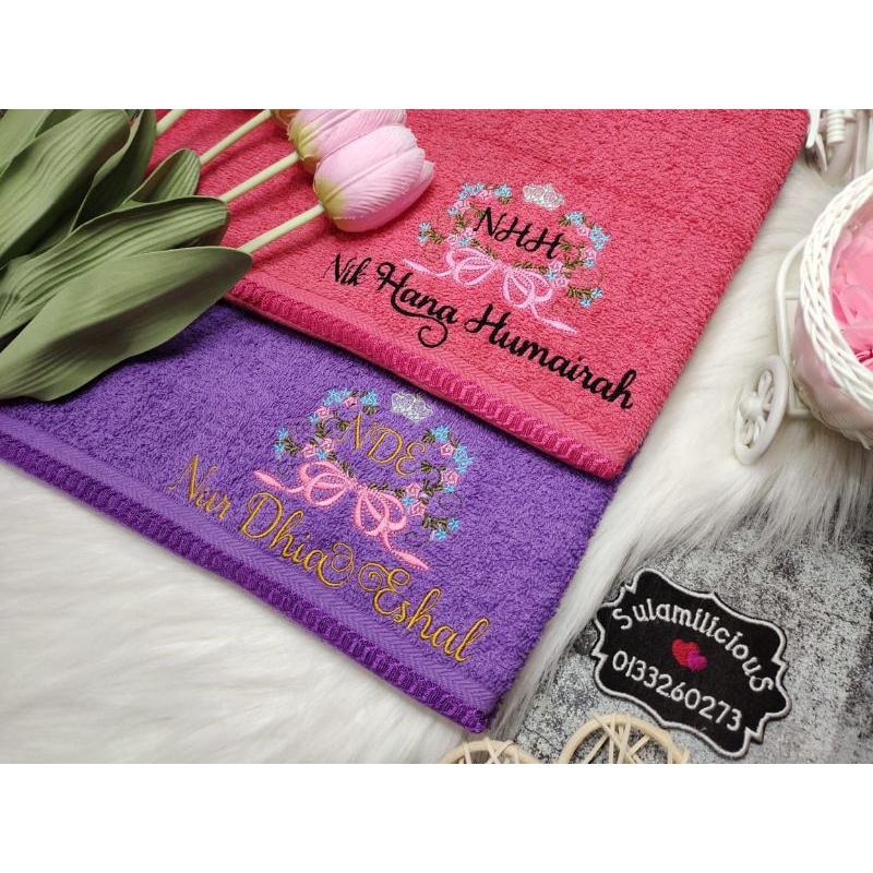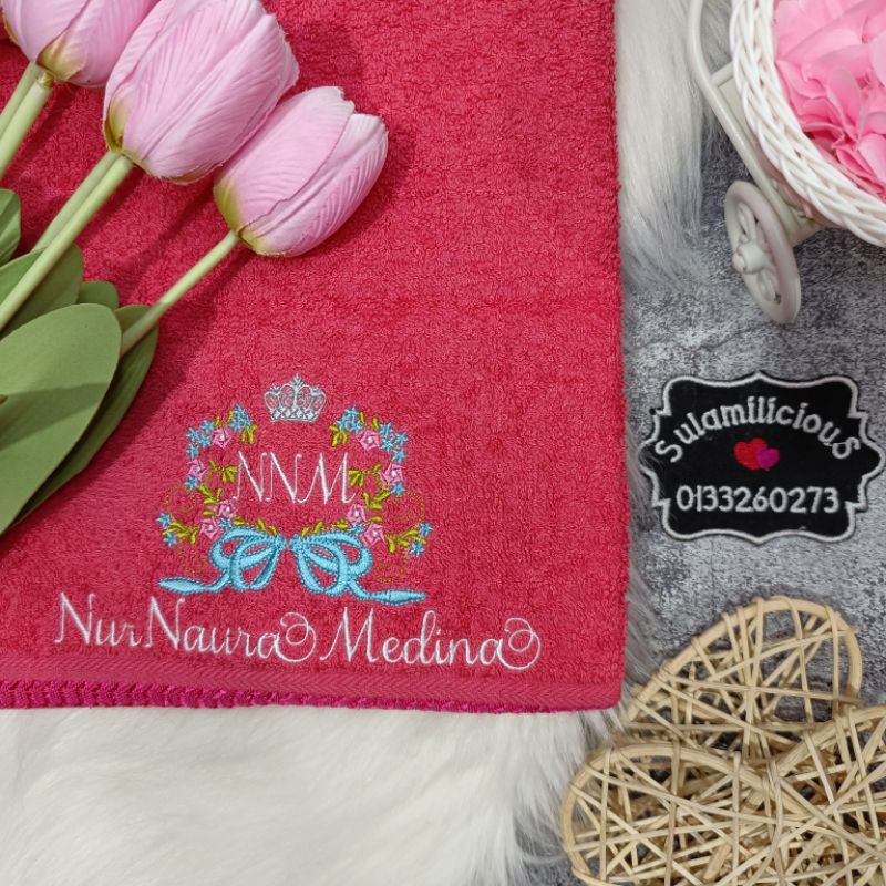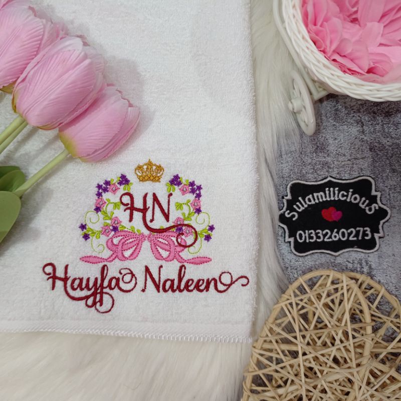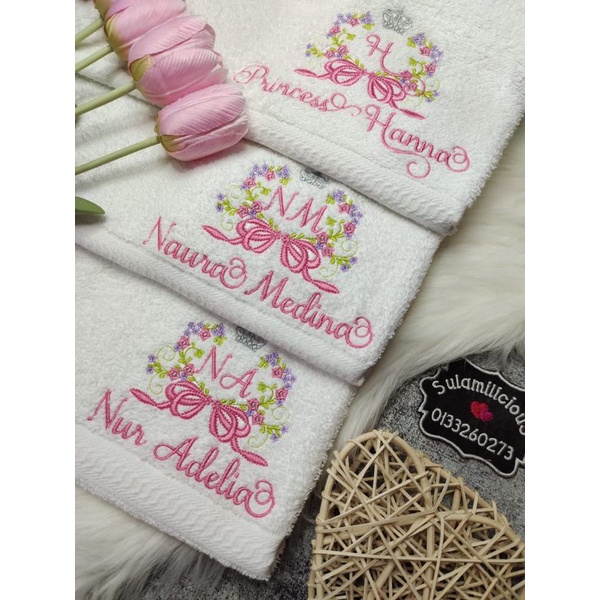 Crown Flower Towel Baby Sulam Nama Cotton Sulamilicious Tuala mandi newborn budak taska tadika Serap Air Birthday Gift