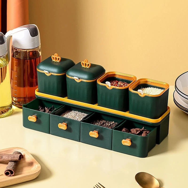 Crown Seasoning Pot Drawer Type Seasoning Box Set Condiment Storage Container Salt Monosodium Glutamate Preservation Box