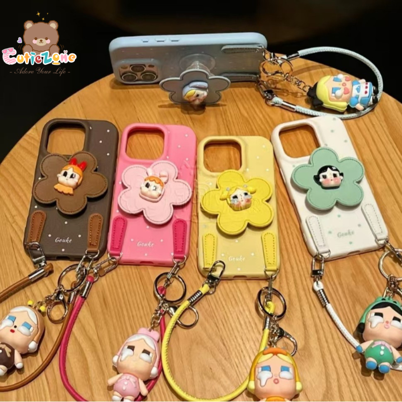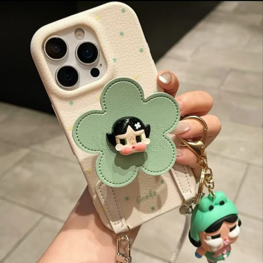 Crybaby Phone Case Casing With Short Phone Charm Pendant Phone Holder Fake Leather PU Case iphone 16 16promax Case iphone 15 Case Cover Phone Shell Leather Phone Strap