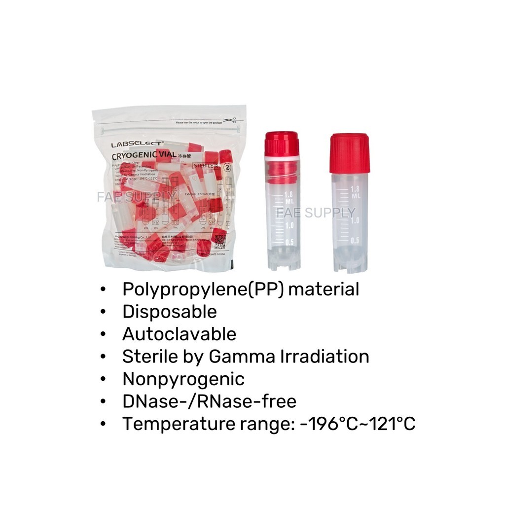 Cryogenic vial cyro tube 2ml cryovial tube screw cap sterile 500pcs box for freezer storage autoclavable lab use