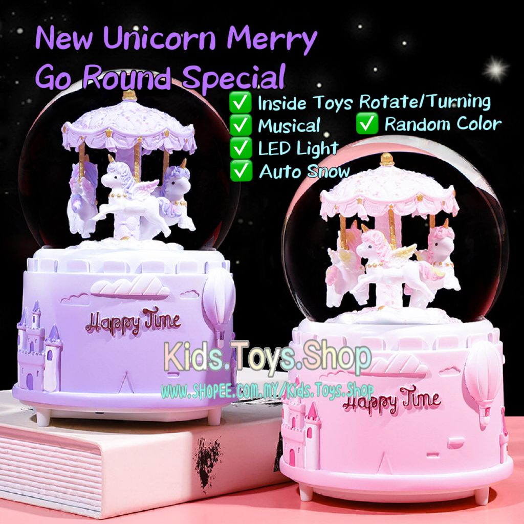 Crystal Ball Music Box Frozen Elsa Pony Unicorn Merry Go Round Mermaids Crystal Musical Ball Birthday Gift