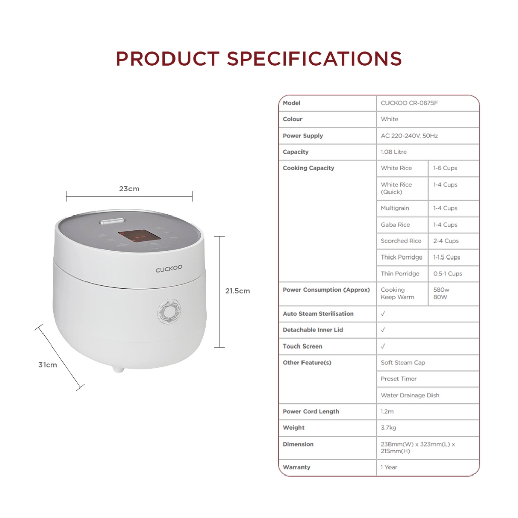 CUCKOO Multi-Cooker (6 Cup/1.08L) - CR-0675F