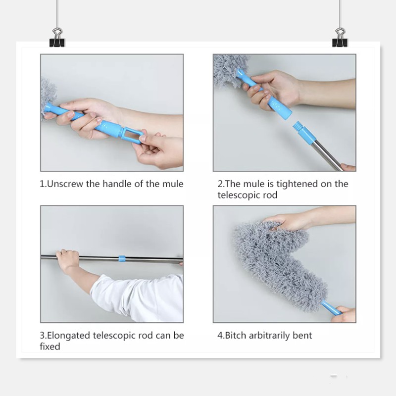 Curved Long-handle Duster Retractable Microfiber Cleaning Brush Flexible Furniture Washable Dust Cleaner