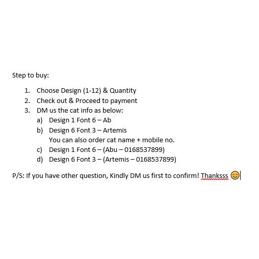 Custom Adult & Kitten Cat Collar Tags TAG NAMA KOLAR KUCING - V1
