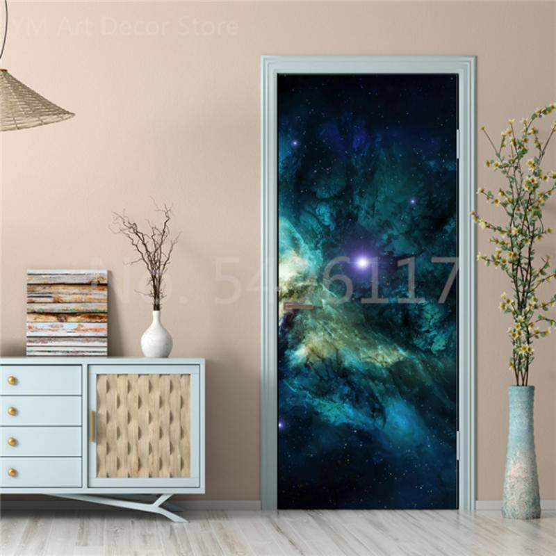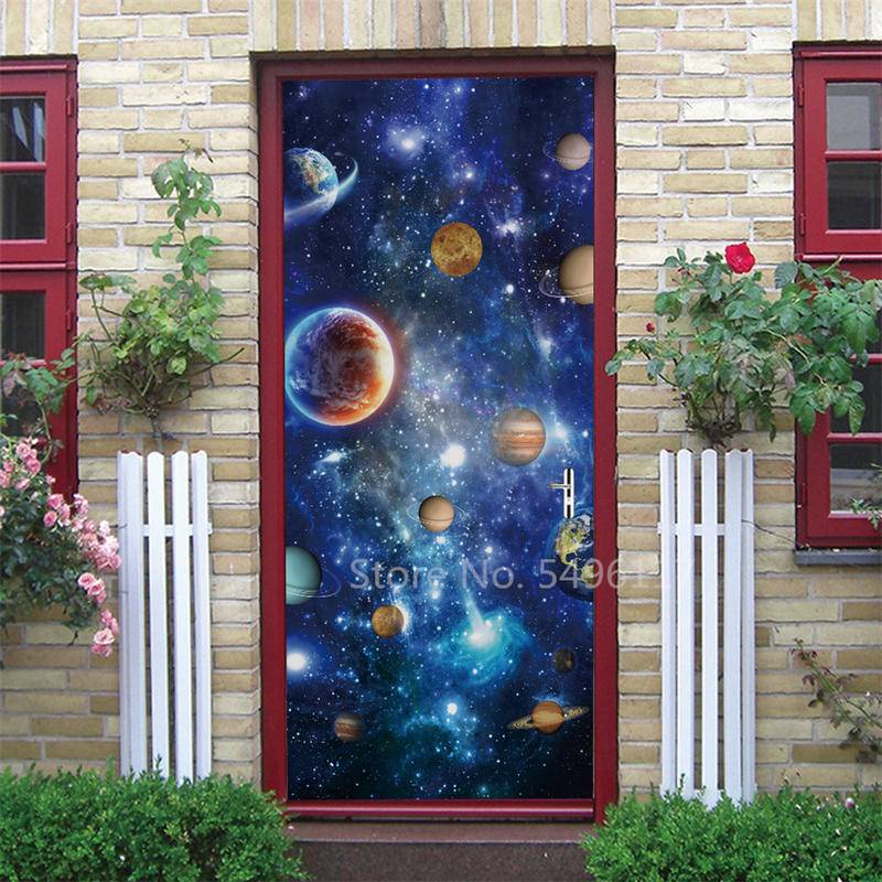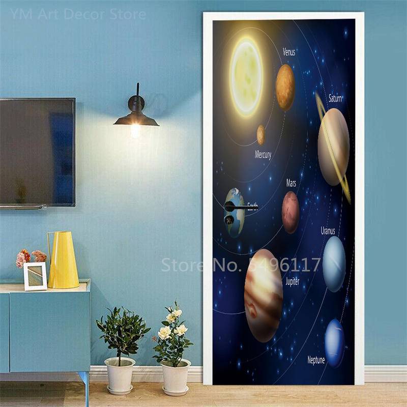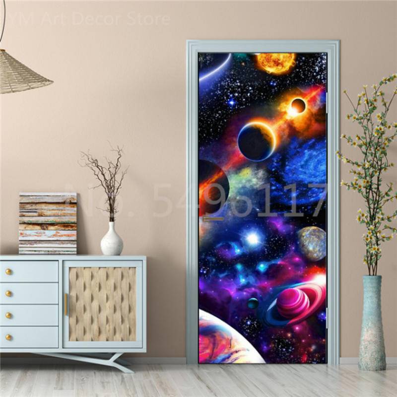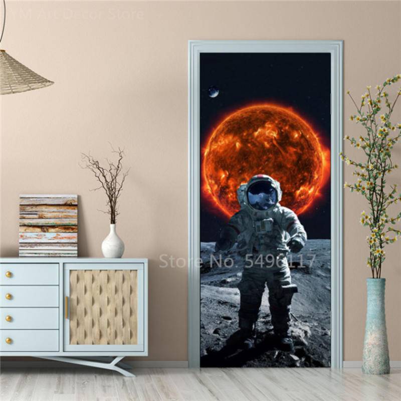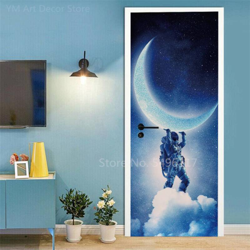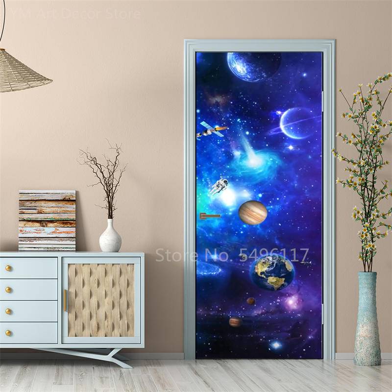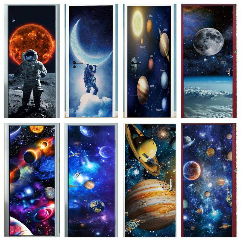 Custom Astronaut Planets Door Sticker Space Moon Waterproof Sticker Self-adhesive Bedroom Boys Room Ktv Decor Poster