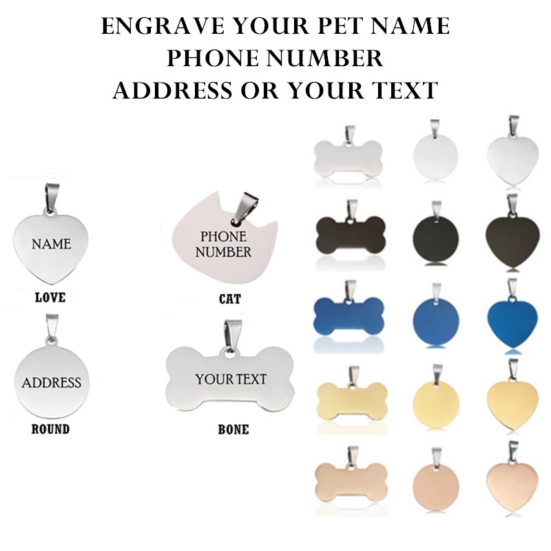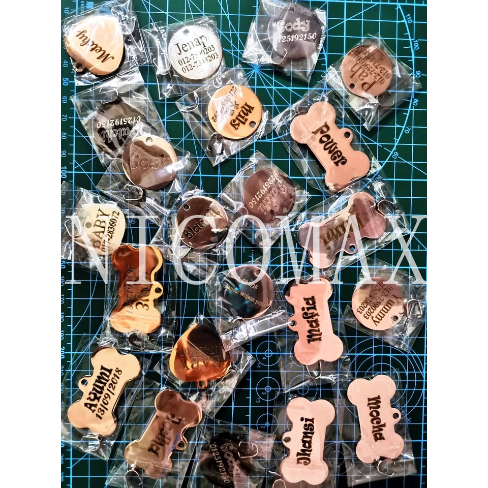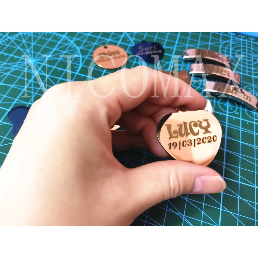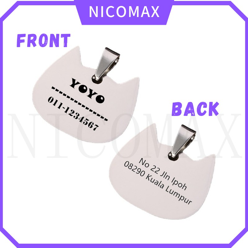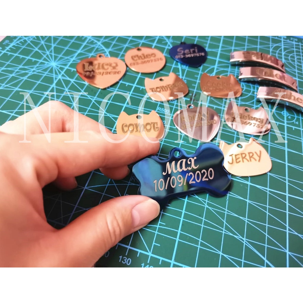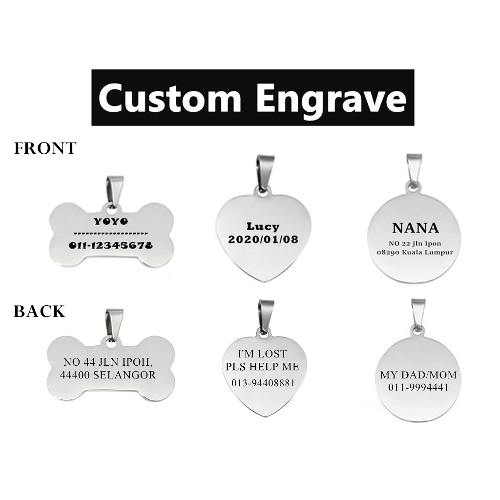 Custom Engrave Tag Kucing Dog Cat Name Tag Pendant Loket Ukir Pet ID Tag Kitten Puppy Kolar Nombor Telefon Collar Neck