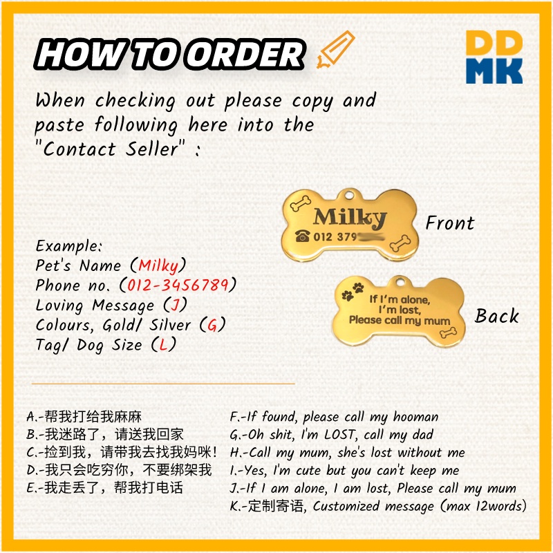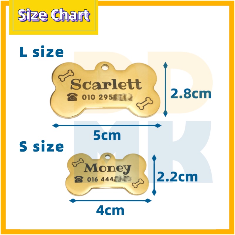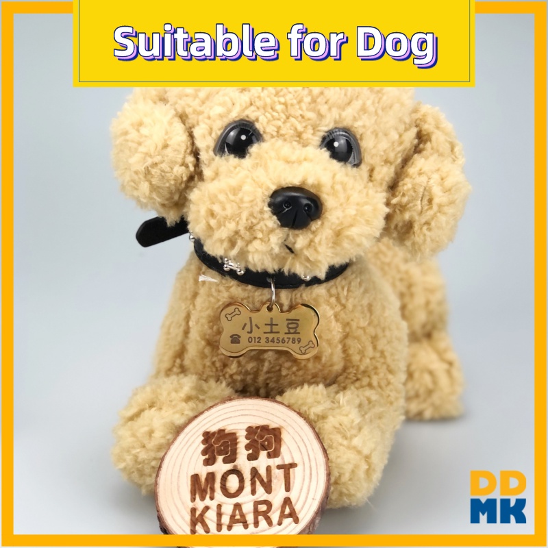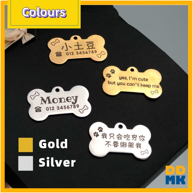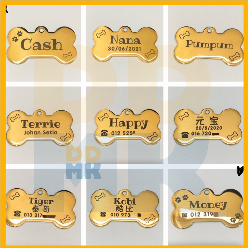 Custom Engrave Premium Gold Bone Tag Kucing Dog Cat Name Pendant Loket Ukir Pet ID Kitten Puppy Kolar Nombor Neck Collar