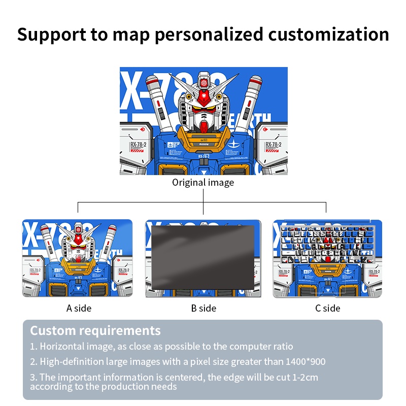 Custom Gundam Precut Laptop Sticker Easy Paste Laptop Skin Keyboard Sticker for Acer Laptop A315 58, A314 21, A514 51, A315 23、AN515 56