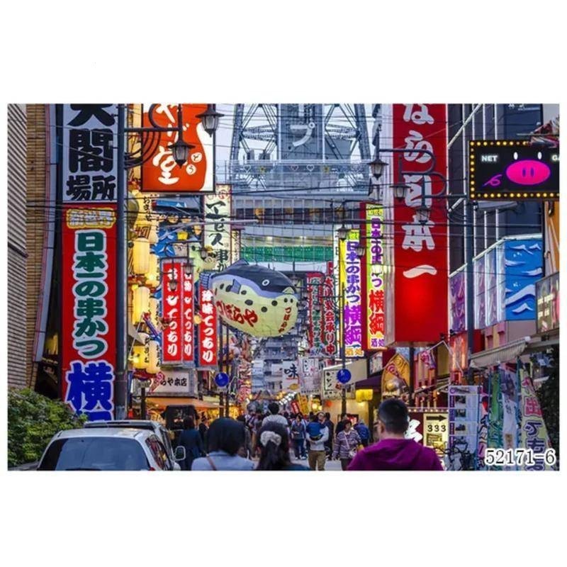Custom Japanese Night Streetscape Architecture Mural Wallpaper for Japanese Sushi Restaurant Background Industrial Decor Wall Paper 3D sticker