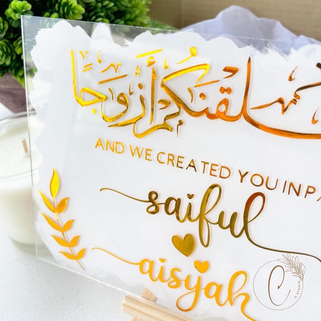 Custom Khat Frame Nama Kaligrafi Hadiah Kahwin untuk Pengantin Baru Surprise Gift Box Hadiah Anniversary Mahar Frame