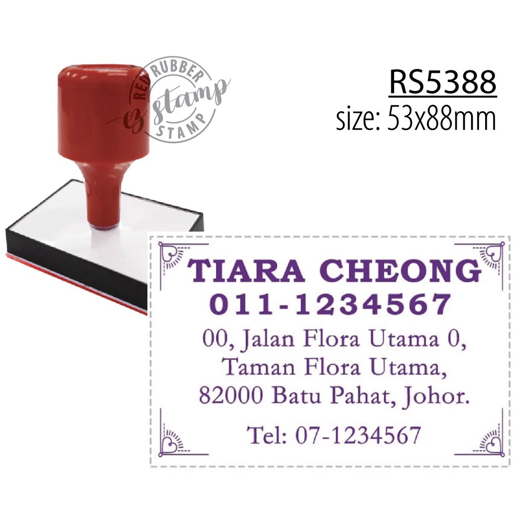 Custom Made RED Rubber Stamp. 53x53mm, 53x63mm, 53x73mm, 53x88mm, 53x103mm, 68x68mm, 68x88mm