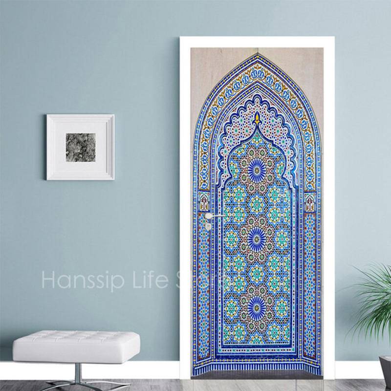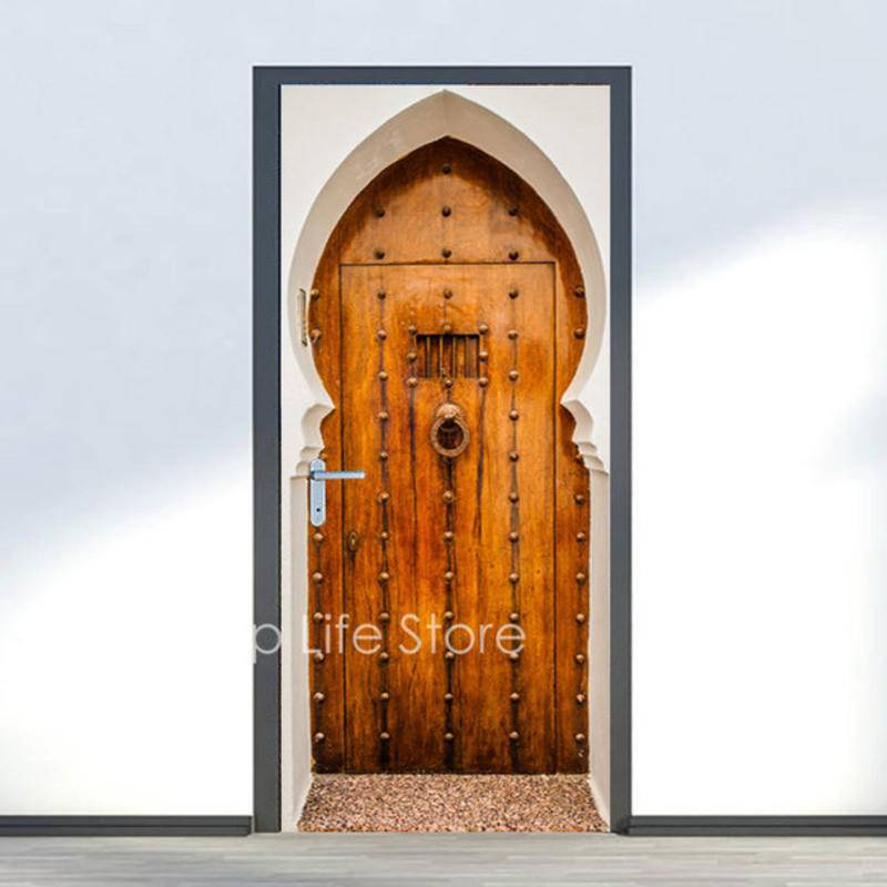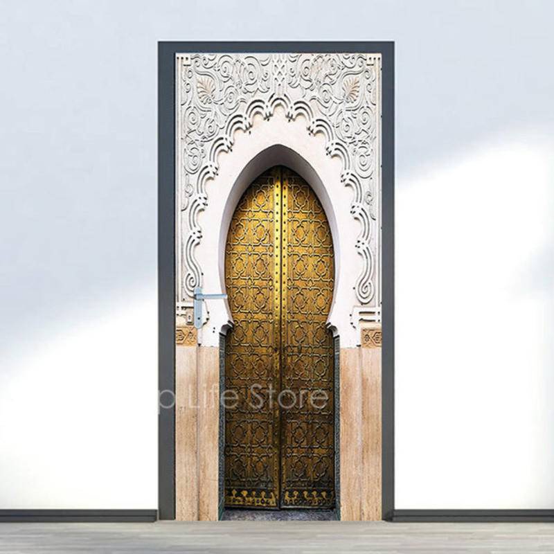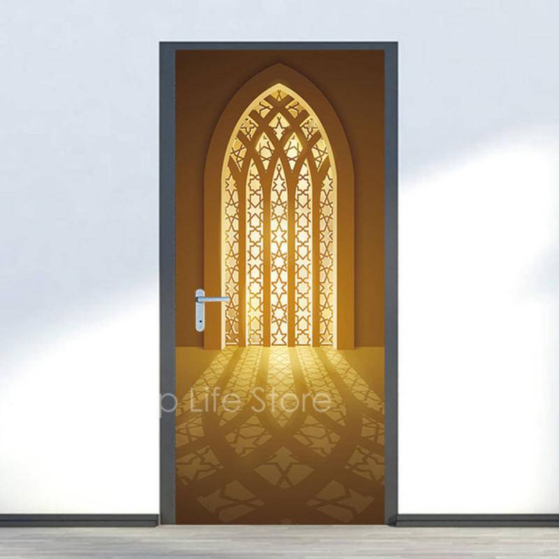 Custom Muslim Islamic Style Door Sticker Retro Arch Architectural Design Mecca Mosque Waterproof Home Decoration Porch Wallpaper Mural sticker