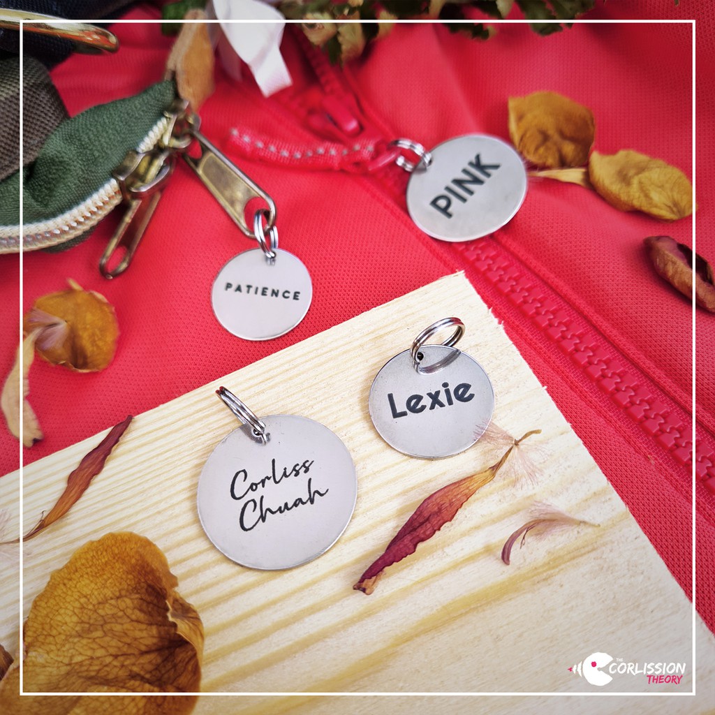 Custom Name Zipper Tag Stainless Steel Aluminium Personalize Gift Engraving Double Side Pendant Nama Pet Kucing Cat
