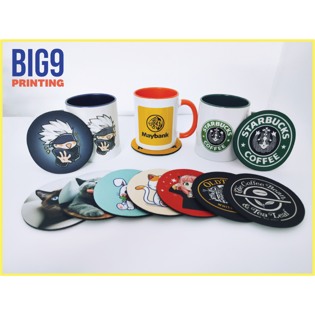 Custom Print Coaster Fabric Rubber Base Glass Cup Mug Coaster Pad Anti Slip Heat Resistance Round 10cm Coaster Table Mat