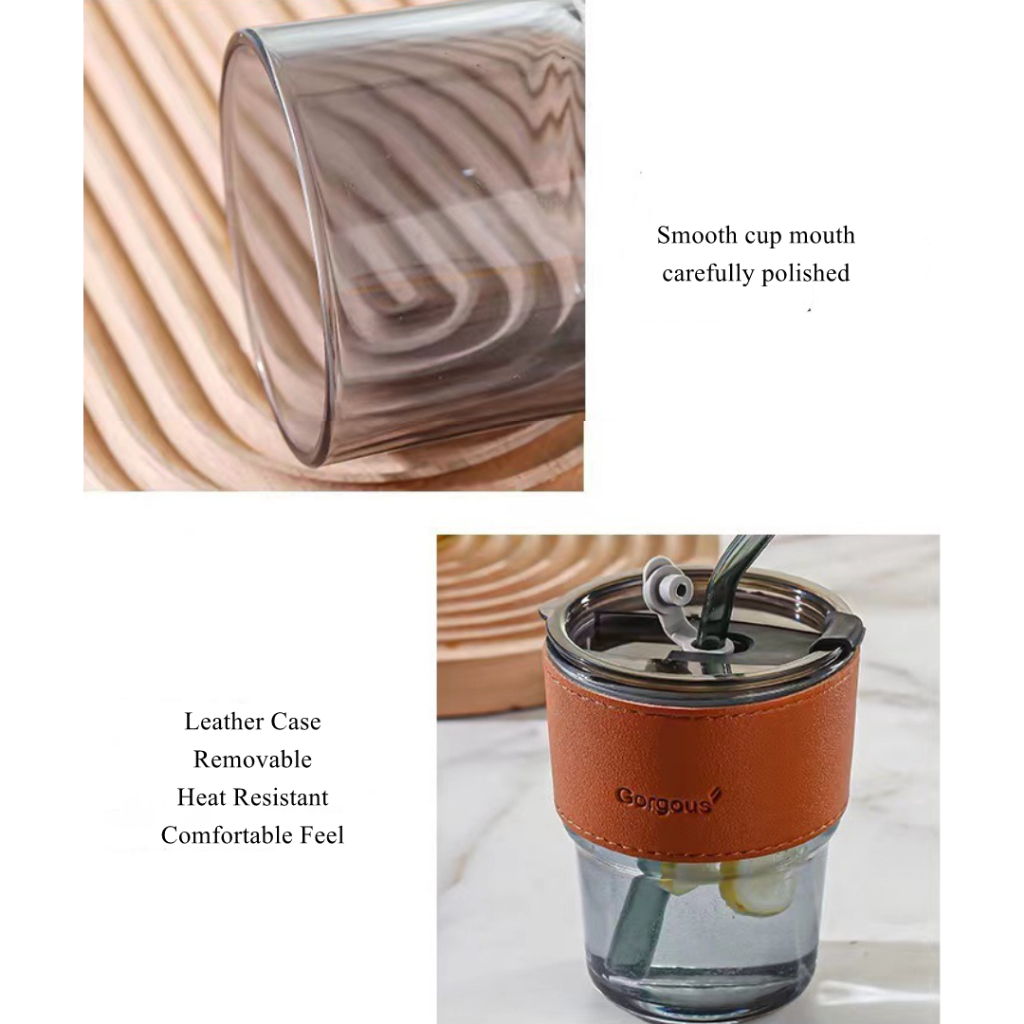 Custom Printing Glass Straw Cup with Lid Heat Cold Resistant Iced Water Bottle Viral Coffee Glass Mug Hadiah Doorgift